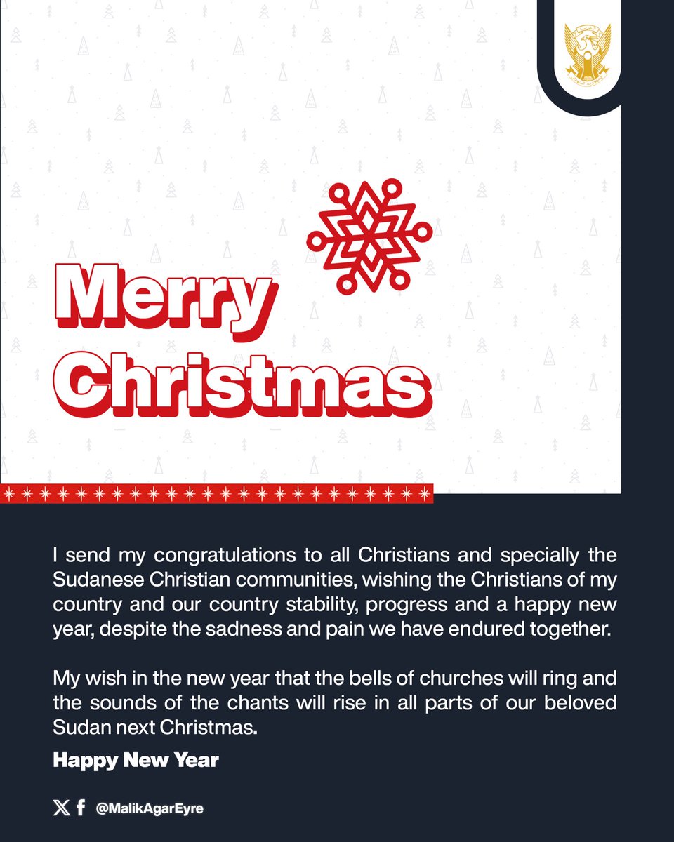 I send my congratulations to all Christians and specially the Sudanese Christian communities, wishing the Christians of my country and our country stability, progress and a happy new year, despite the sadness and pain we have endured together.