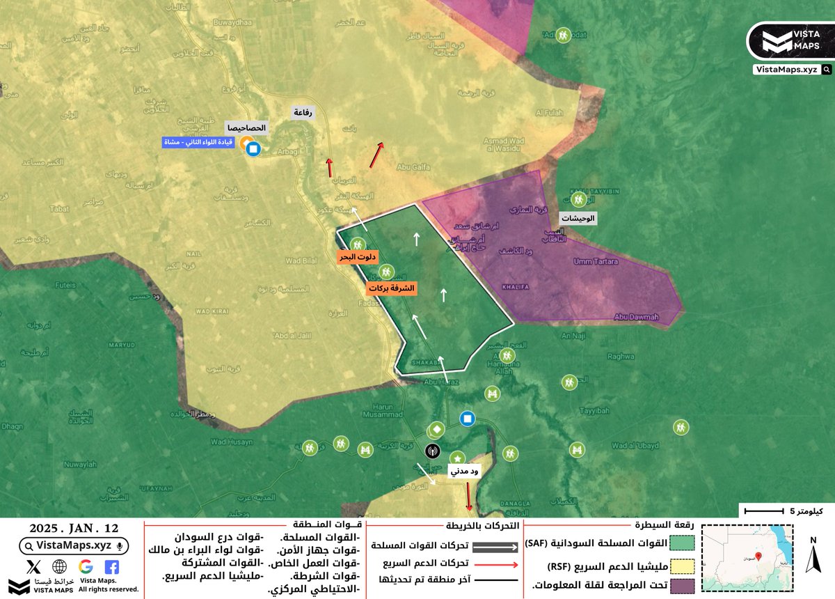 – مدينة ود مدني تشهد استمراراً في العمليات العسكرية حيث لا تزال هناك جيوب للمليشيا في جنوب المدينة، بالإضافة إلى أفراد آخرين تائهين.