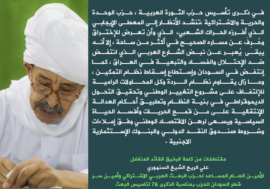 حزب البعث العربي الاشتراكي الأصل … By null Published September 12, 2025 Share SHARE Facebook Twitter Pinterest LinkedIn[ad_1] [ad_2] Source by حزب البعث العربي الاشتراكي – الأصل Facebook Twitter Pinterest LinkedIn Share This Article Facebook Twitter Email Print Previous Article بسم الله الرحمن الرحيم حزب الأمة القومي الأمانة العامـة دائرةالإعلام تصريح صحفي… Next Article but rather targets the voices of the majority of Sudanese women and men who aspi… Leave a Comment Leave a Reply Cancel replyYour email address will not be published. Required fields are marked *Comment * Name * Email * Website Save my name, email, and website in this browser for the next time I comment. Δ SearchSearchRecent Postsأكرمنا الله صباح اليوم الأحد بلقاء إخوةٍ كرام، على ضفة النيل الأزرق، حيث شاي الش… أعلن بنك السودان المركزي في منشور إدارة السياسات رقم (2025/15) رفع الاحتكار عن ا… ندوة بعنوان: القانون الدولي والسيادة الوطنية قراءة في موقف السودان من لجنة تقصي … والي نهر النيل تستقبل وزير الموارد البشرية والرعاية الاجتماعية الوزير يشيد بالأ… كامل ادريس: رئيس اللجنة السياسية لمؤسسات الدولة السودانية. Recent CommentsNo comments to show.