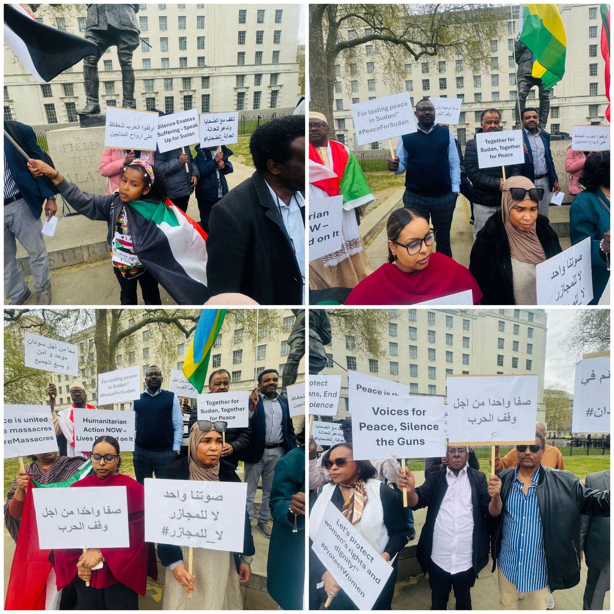 |صور| تظاهرة منظومات المجتمع المدني والكيانات السياسية والمهنية ببريطانيا في لندن دعماً للمؤتمر المزمع انعقاده حول السودان ولرفض الحرب وللمطالبة باستعادة شرعية ثورة ديسمبر المجيدة.