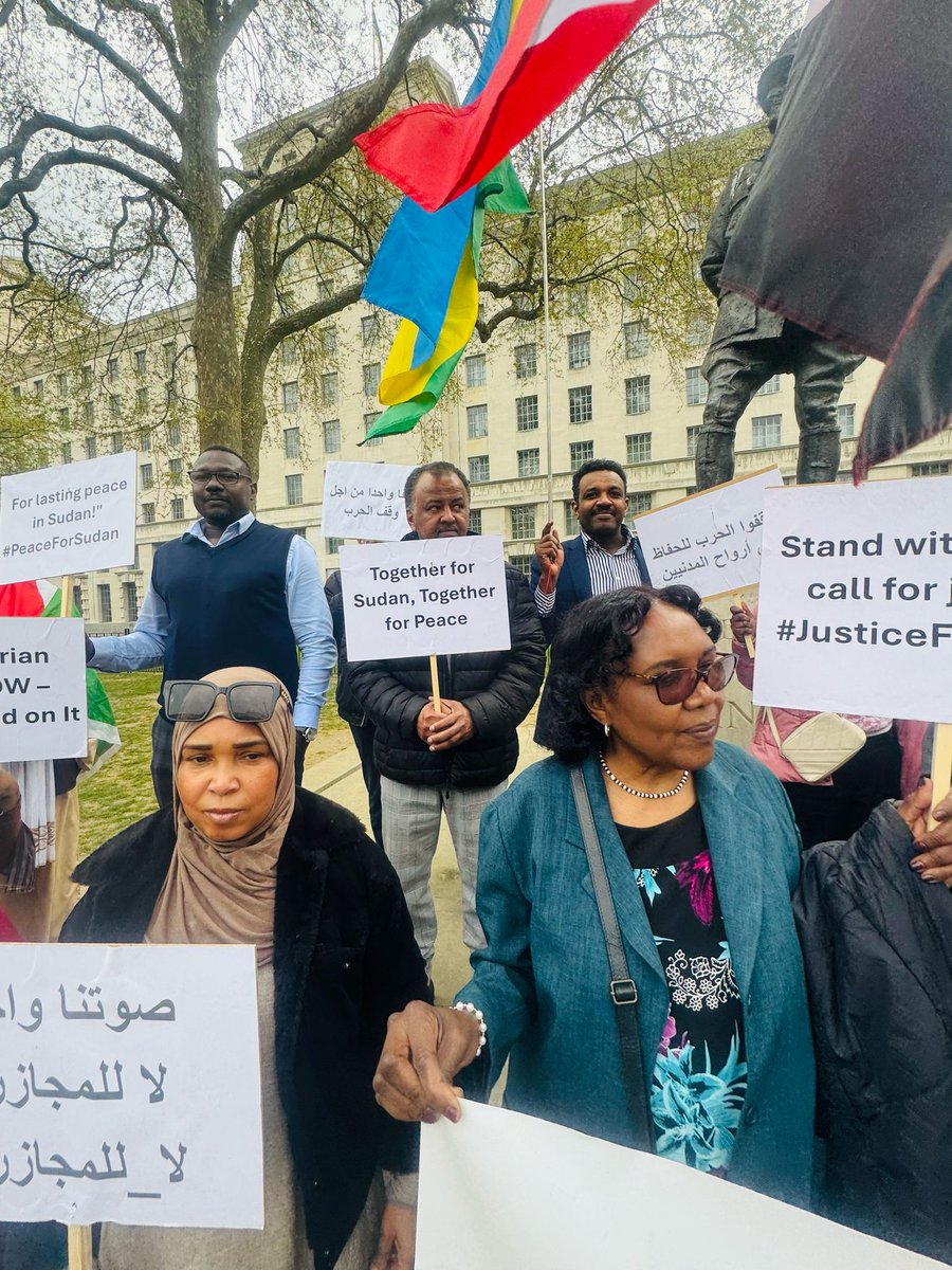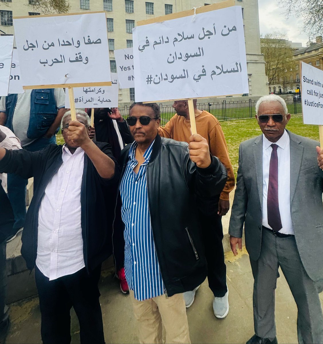 نظم السودانيات والسودانيين في منظومات المجتمع المدني والكيانات السياسية والمهنية في لندن اليوم الاحد 13 ابريل 2025م امام مجلس الوزراء البريطاني ، تظاهرة دعماً للمؤتمر المزعم انعقاده في لندن ، وللتعبير عن رفض استمرار الحرب والدعوة للسلام واستعادة شرعية ثورة ديسمبر المجيدة و تنزيل مطالبها و استعادة مسار التحول المدني الديمقراطي وحماية المدنيات والمدنيين وايقاف استهدافهم الممنهج ، وقد تم تسليم مذكرة لمجلس الوزراء البريطاني من قبل المتظاهرين .