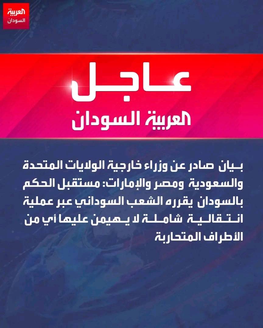 مستقبل الحكم بالسودان يقرره الشعب السوداني عبر عملية انتقالية شاملة لا يهيمن عليها أي من الأطراف المتحاربة