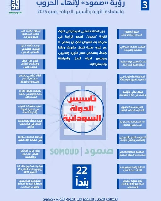 يبرز التحالف المدني الديمقراطي لقوى الثورة “صمود”، كحجر الزاوية في معركة بناء السودان الذي لن ينهض إلا عبر قوى مدنية تحمل مشروعًا وطنياً جامعاً، يستكمل مسار الثورة والتغيير، ويؤسس لدولة العدل والمواطنة والديمقراطية.