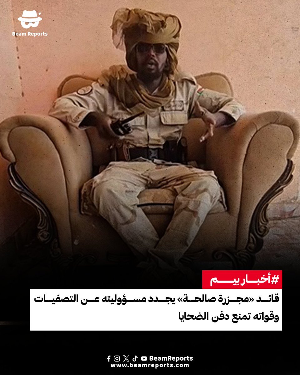 جدد قائد مجزرة صالحة في جنوب أم درمان بالعاصمة السودانية الخرطوم والتي أودت بحياة 31 شخصًا مسؤوليته عن تصفية العشرات، ومؤكدًا على أنه ينتمي لقوات الدعم السريع منذ عام 2016، قبل أن تمنع قواته دفن الضحايا، بحسب لجان مقاومة المنطقة. في وقت اطلعت «بيم ريبورتس» على معلومات وصور نشرها ذوو الضحايا في مجموعات خاصة على الإنترنت، تشير إلى أنهم مدنيون بالكامل، كما أن معظمهم شبان في مقتبل العمر.
