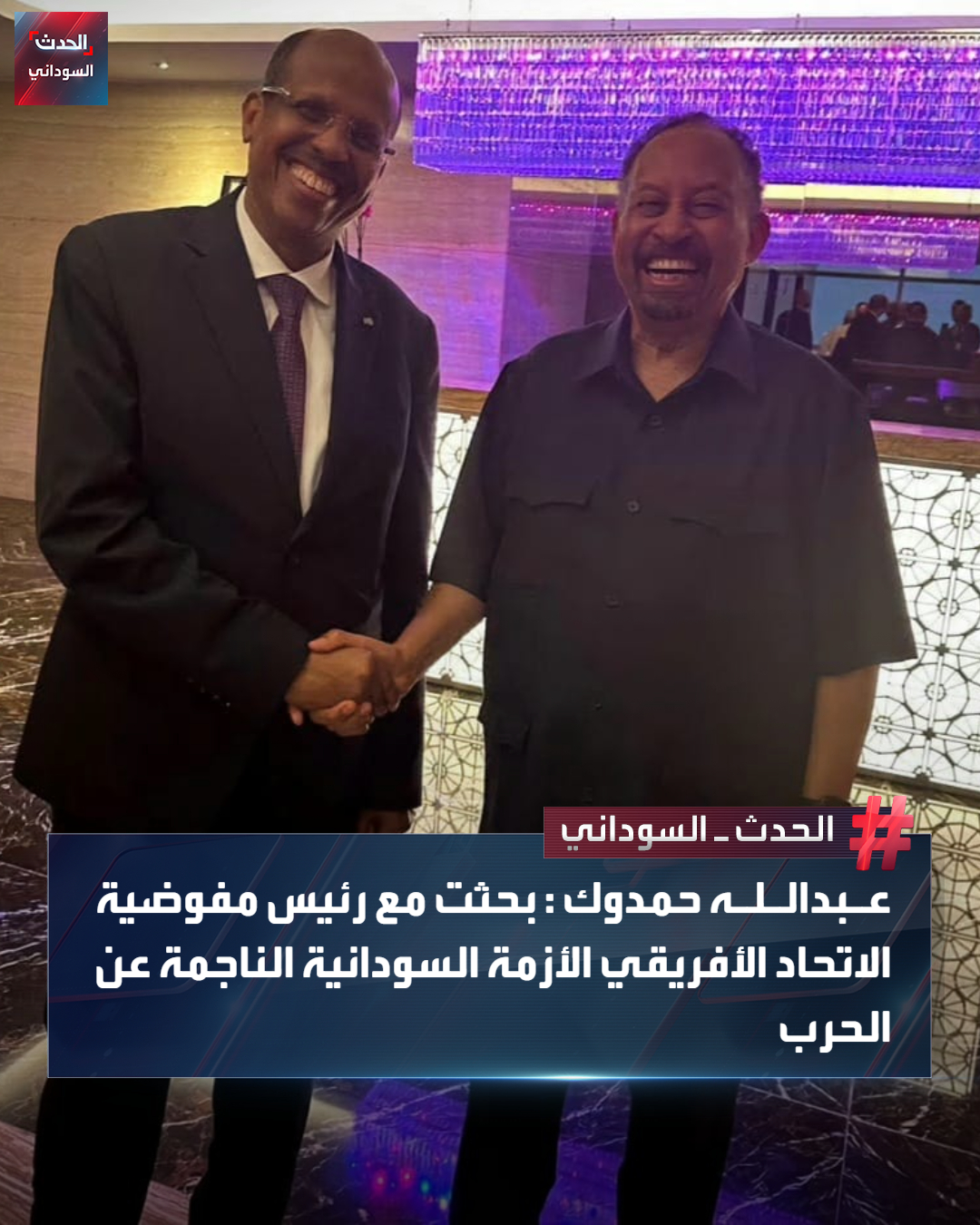 وأوضح “حمدوك” في منشور على “فيسبوك”، أنه بحث مع “محمود” الأزمة السودانية الناجمة عن الحرب وآثارها الإنسانية الكارثية على السودانيين والضرورة الملحة لإيقافها، بجانب استعراض رؤية “صمود” لوقف وإنهاء الحرب، مشيراً إلى أن رئيس المفوضية أمن أن لاحلول عسكرية للنزاع في السودان.