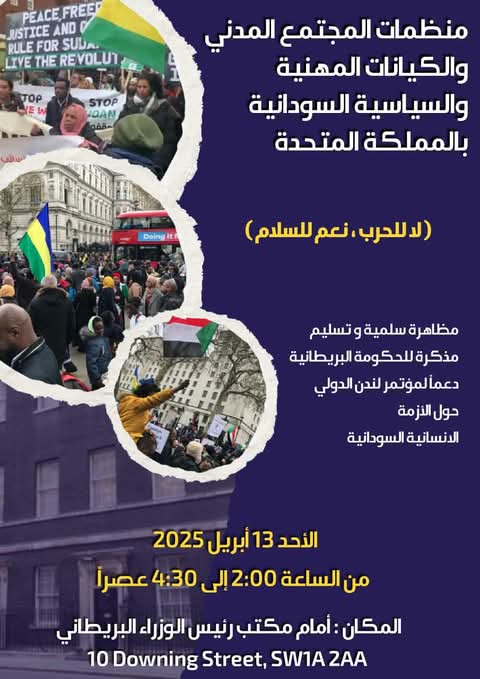 مظاهرة سلمية و تسليم مذكرة للحكومة البريطانية دعما لمؤتمر لندن الدولي حول الأزمة الانسانية السودانية