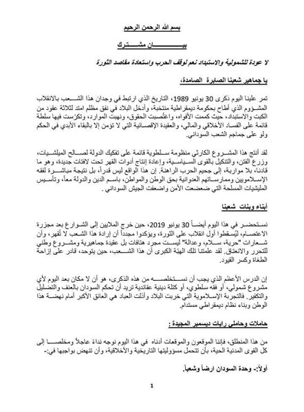 في هذا اليوم المجيد، نؤكد أن إرادة التغيير لا تزال حيّة. فثورة ديسمبر لم تكن لحظة عابرة، بل مشروع مستمر نحو بناء دولة مدنية ديمقراطية عادلة. واليوم، لا سبيل إلا باستعادة هذا المشروع، ورفض الحرب، ومواجهة الشمولية بكل أشكالها.