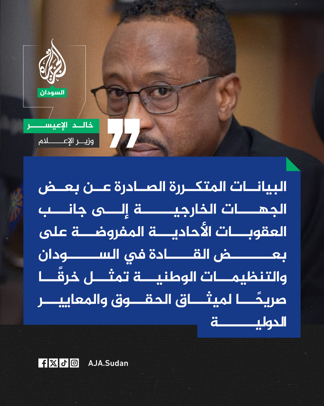 وزير الثقافة والإعلام خالد الإعيسر: لا تمتلك أي جهة خارجية الحق في تحديد خيارات الشعب السوداني