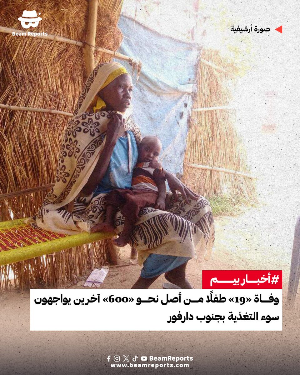 أعلن المتحدث باسم المنسقية العامة للنازحين واللاجئين في دارفور، آدم رجال، تفشي سوء التغذية بين الأطفال والنساء الحوامل في مخيم كلمة بمدينة نيالا بولاية جنوب دارفور، مشيرًا إلى وفاة 19 طفلًا بالمرض في مارس الماضي، فيما يعاني نحو 600 آخرين منه.