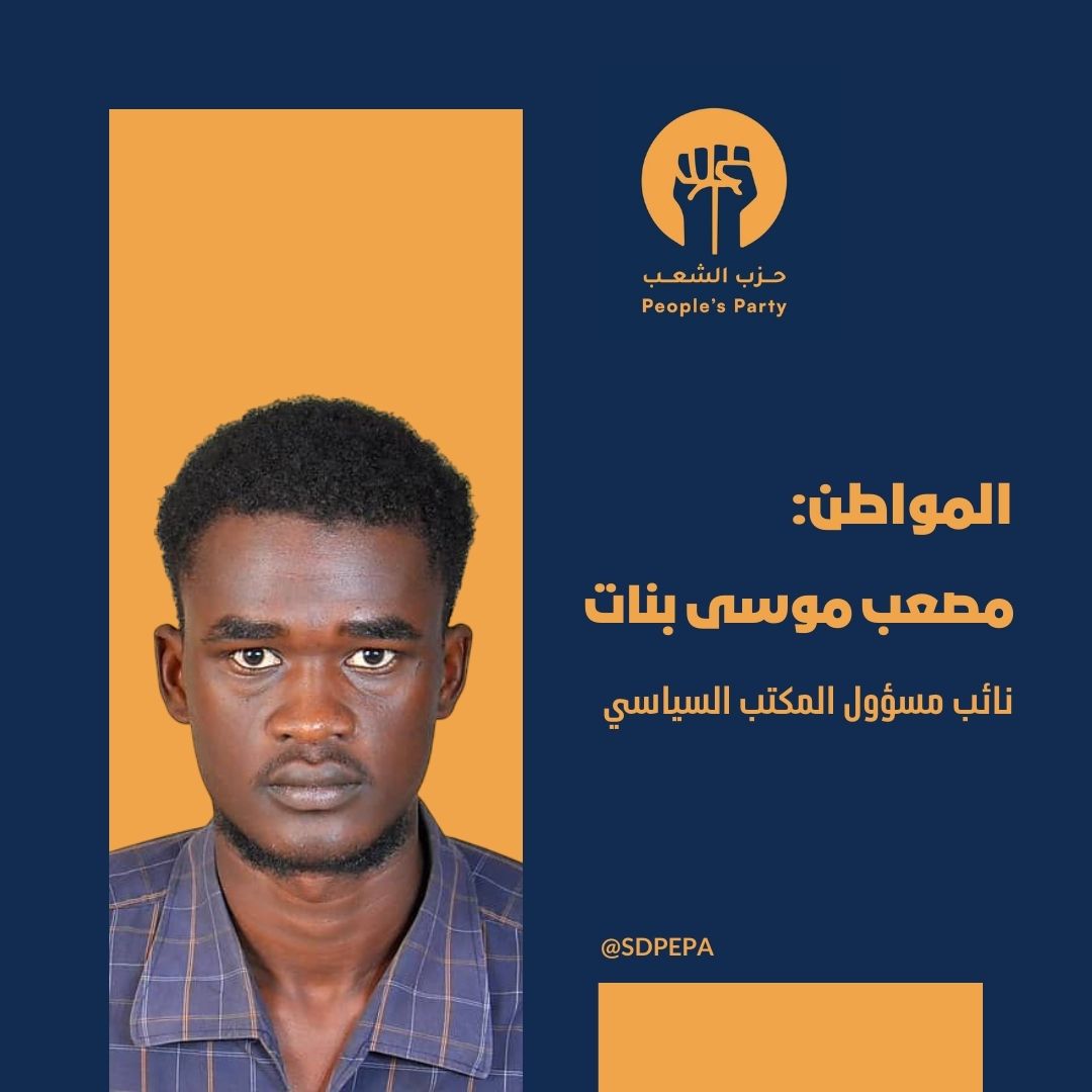 اصدر السيد رئيس حزب الشعب المواطن عبد الله عبد الوهاب ادريساب قرارا بتكليف المواطن مصعب موسى بنات نائبا لمسؤول المكتب السياسي للحزب.