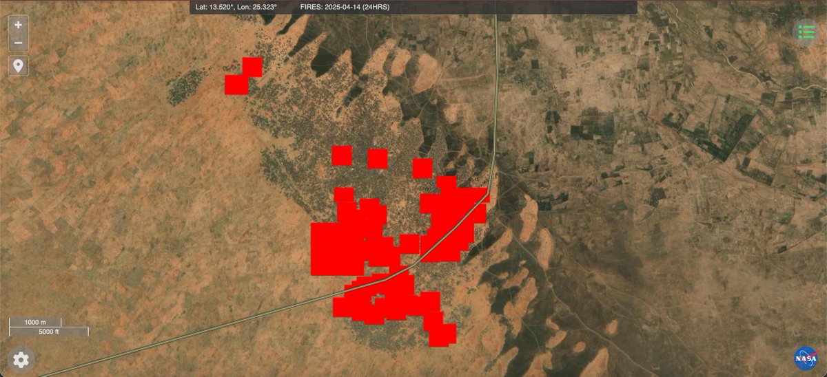 🛰️ رصدنا عبر الأقمار الصناعية، من خلال نظام VIIRS التابع لناسا، نشاطاً حراريًا كثيفًا يُشير إلى اندلاع حرائق في أجزاء واسعة من وسط وجنوب معسكر زمزم للنازحين جنوبيّ مدينة الفاشر، بتاريخ اليوم 14 أبريل 2025.