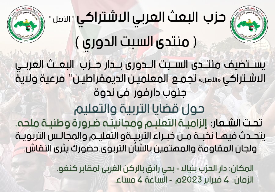 حزب البعث العربي الاشتراكي الأصل … By null Published September 15, 2025 Share SHARE Facebook Twitter Pinterest LinkedIn[ad_1] [ad_2] Source by حزب البعث العربي الاشتراكي – الأصل Facebook Twitter Pinterest LinkedIn Share This Article Facebook Twitter Email Print Previous Article تحول مدني ديمقراطي و عودة الطرف العسكري لواجباته الأساسية بدلاً من خوض معترك الس… Next Article بدلا من الاكتفاء بشعارات على شاكلة مجانية التعليم والخدمات الصحية دون تخطيط حقيق… Leave a Comment Leave a Reply Cancel replyYour email address will not be published. Required fields are marked *Comment * Name * Email * Website Save my name, email, and website in this browser for the next time I comment. Δ SearchSearchRecent Postsأكرمنا الله صباح اليوم الأحد بلقاء إخوةٍ كرام، على ضفة النيل الأزرق، حيث شاي الش… أعلن بنك السودان المركزي في منشور إدارة السياسات رقم (2025/15) رفع الاحتكار عن ا… ندوة بعنوان: القانون الدولي والسيادة الوطنية قراءة في موقف السودان من لجنة تقصي … والي نهر النيل تستقبل وزير الموارد البشرية والرعاية الاجتماعية الوزير يشيد بالأ… كامل ادريس: رئيس اللجنة السياسية لمؤسسات الدولة السودانية. Recent CommentsNo comments to show.