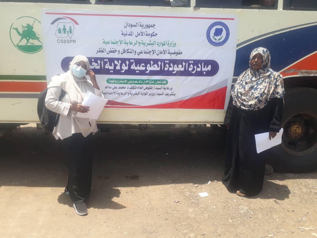 وأكدت أن الإدارة تبدي الاستعداد التام عبر الباحثين الاجتماعيين لمواصلة التفويج بتوفير كافة السبل التي تعزز من عمليات تفويج العائدين إلى ولاياتهم.