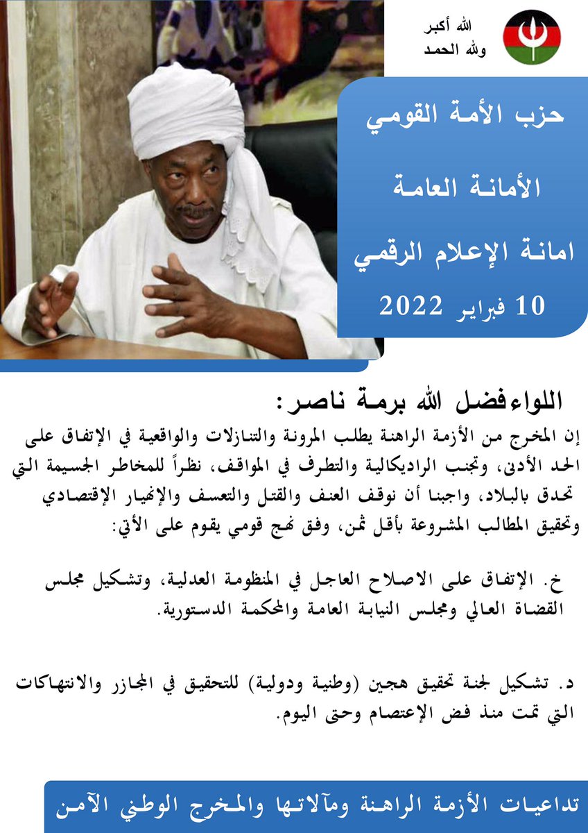سعادة اللواء فضل الله برمة ناصر، رئيس الحزب المكلف: المخرج من الازمة الراهنة يتط…