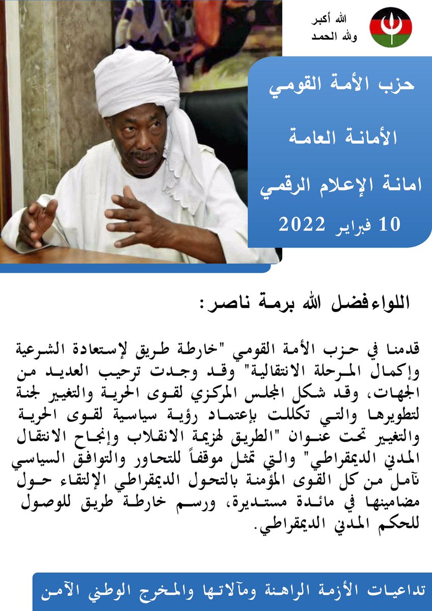 Reading: سعادة اللواء فضل الله برمة ناصر، رئيس الحزب المكلف، خلال المؤتمر الصحفي حول: تدا…