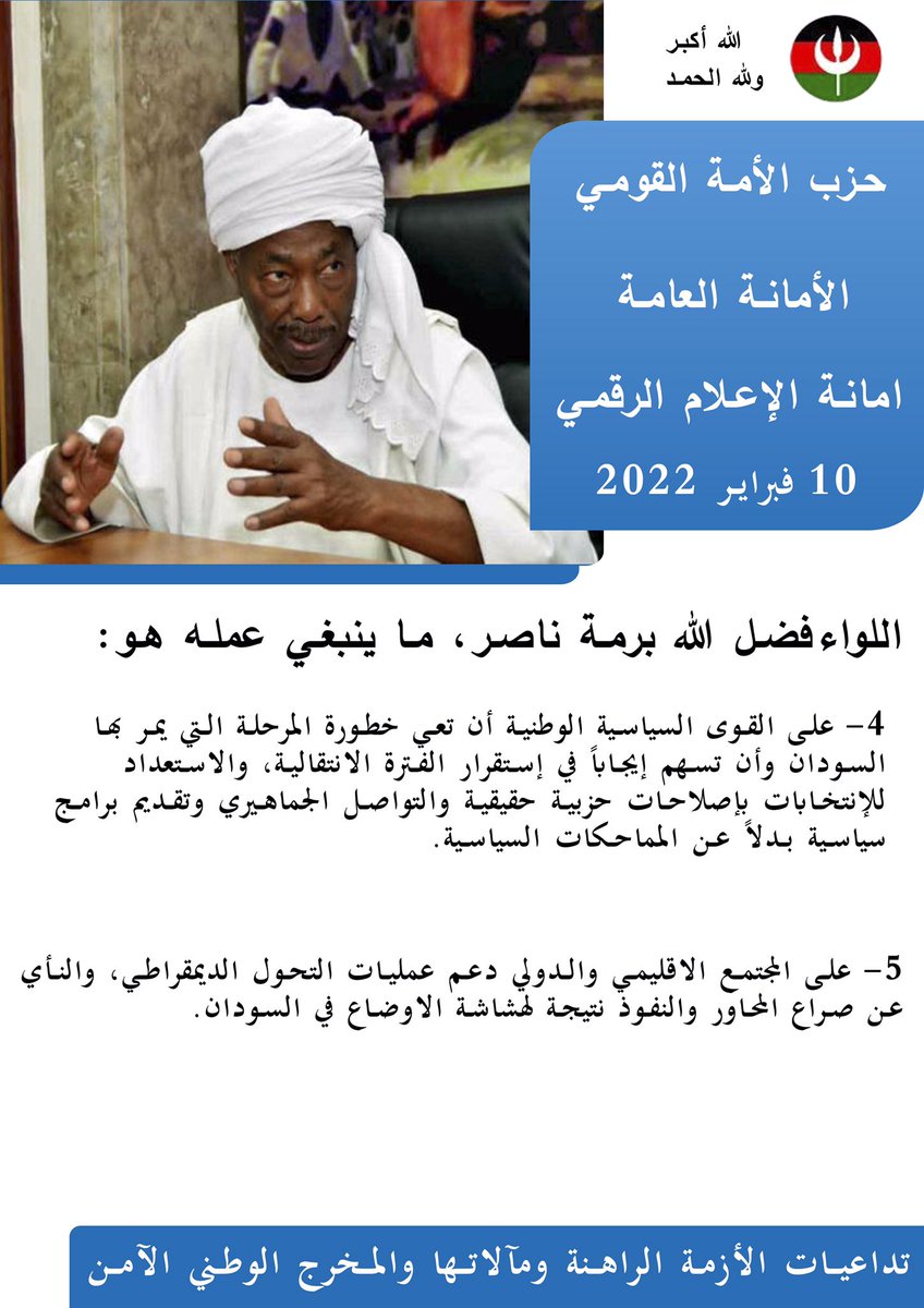 سعادة اللواء فضل الله برمة ناصر، رئيس الحزب المكلف، خلال المؤتمر الصحفي حول: تدا…