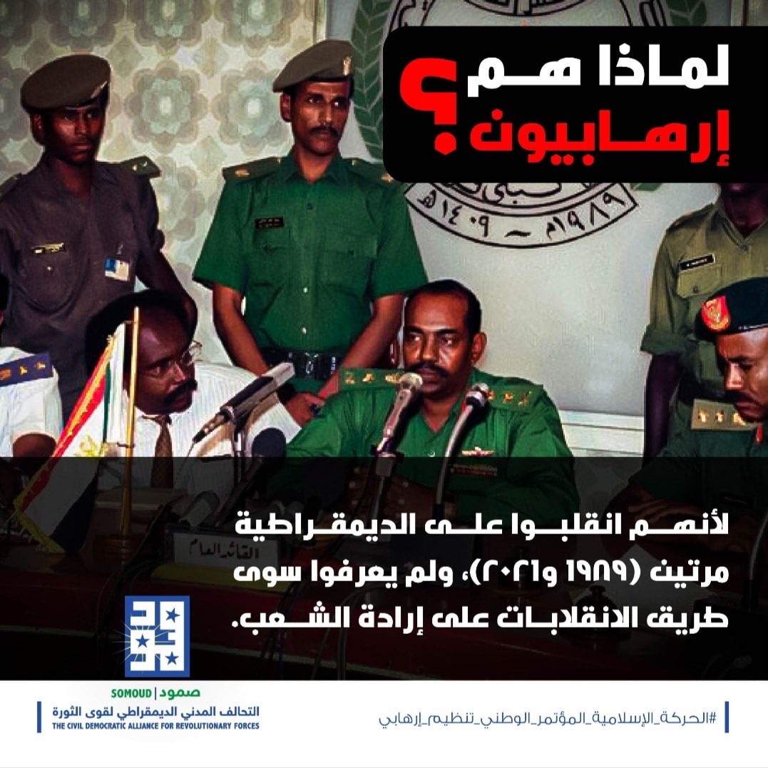 لأنهم انقلبوا على الديمقراطية مرتين (1989 و2021)، ولم يعرفوا سوى طريق الانقلابات على إرادة الشعب.