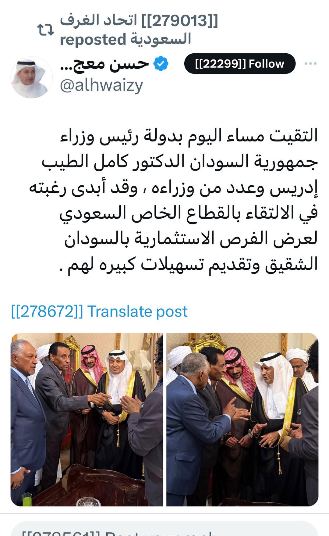 رئيس وزراء السودان التقى برئيس مجلس الغرفة التجارية السعودية بالرياض.. طلب منه  لقاء رجال الأعمال السعوديين!!