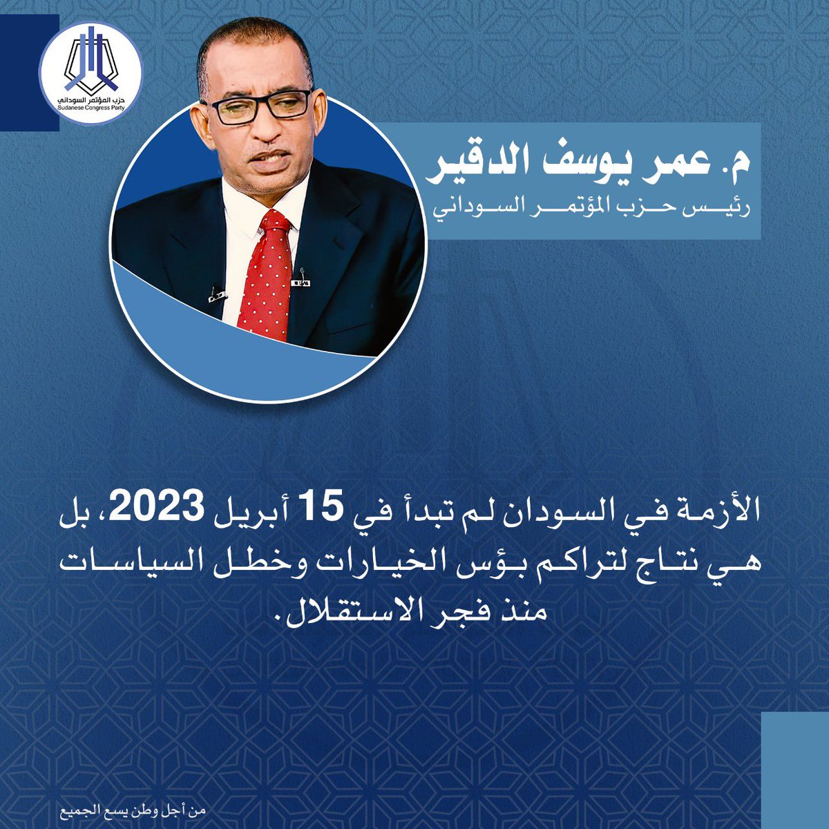 حزب المؤتمر السوداني الأزمة في السودان لم تبدأ في ١٥ أبريل ٢٠٢٣، بل هي نتاج لتراكم بؤس الخيارات وخطل … By null Published September 17, 2025 Share SHARE Facebook Twitter Pinterest LinkedIn[ad_1] الأزمة في السودان لم تبدأ في ١٥ أبريل ٢٠٢٣، بل هي نتاج لتراكم بؤس الخيارات وخطل السياسات منذ فجر الاستقلال. م.عمر الدقير @omereldigair رئيس الحزب 30 مارس 2025م [ad_2] Source by حزب المؤتمر السوداني Facebook Twitter Pinterest LinkedIn Share This Article Facebook Twitter Email Print Previous Article هل الثورة هي سبب الحرب؟ … Next Article تفقدت حكومة اقليم دارفور اليوم ، سجن شالا قسم الرجال والنساء ، لقد قمنا بتصديق ك… Leave a Comment Leave a Reply Cancel replyYour email address will not be published. Required fields are marked *Comment * Name * Email * Website Save my name, email, and website in this browser for the next time I comment. Δ SearchSearchRecent Postsأكرمنا الله صباح اليوم الأحد بلقاء إخوةٍ كرام، على ضفة النيل الأزرق، حيث شاي الش… أعلن بنك السودان المركزي في منشور إدارة السياسات رقم (2025/15) رفع الاحتكار عن ا… ندوة بعنوان: القانون الدولي والسيادة الوطنية قراءة في موقف السودان من لجنة تقصي … والي نهر النيل تستقبل وزير الموارد البشرية والرعاية الاجتماعية الوزير يشيد بالأ… كامل ادريس: رئيس اللجنة السياسية لمؤسسات الدولة السودانية. Recent CommentsNo comments to show.
