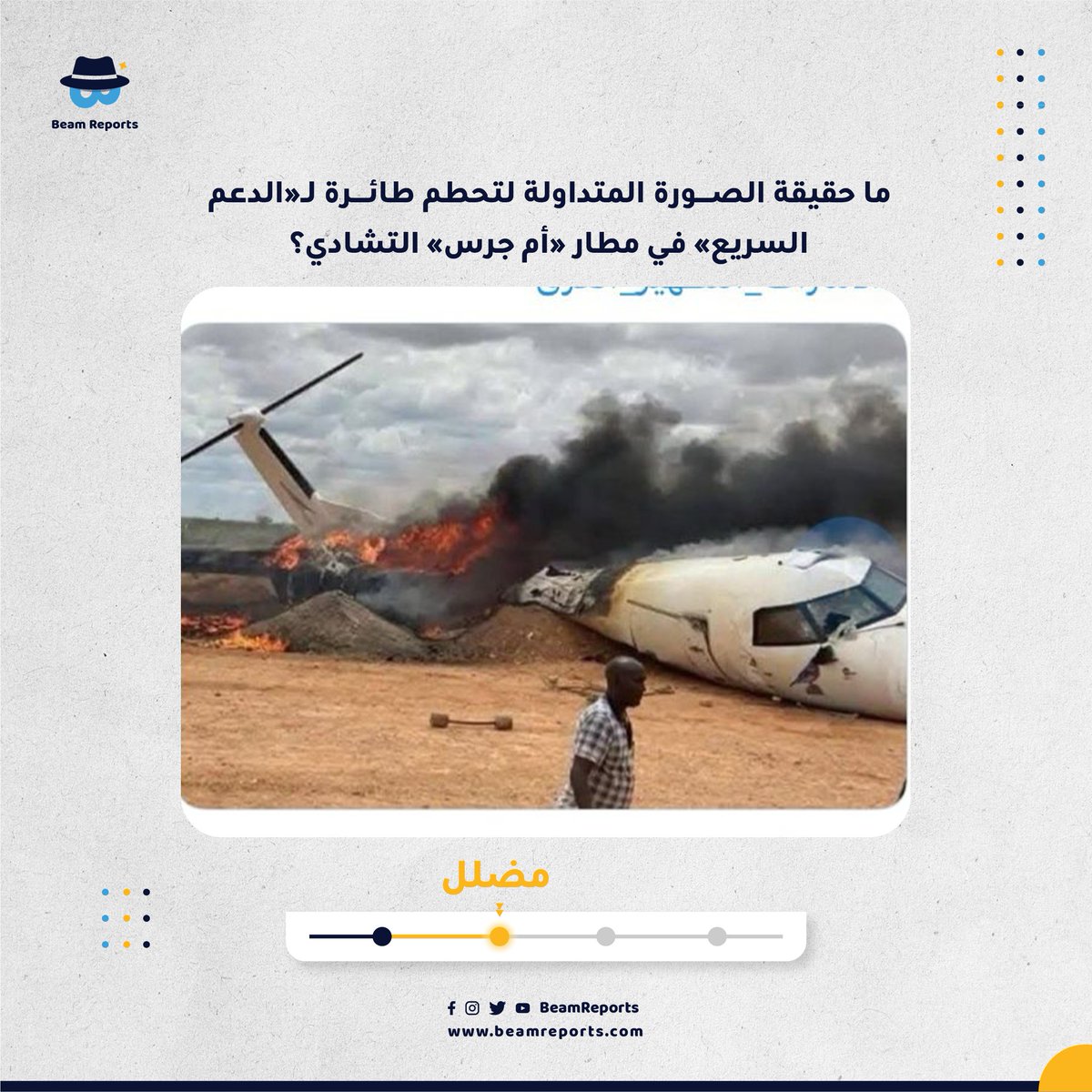 ما حقيقة الصورة المتداولة لتحطم طائرة لـ«الدعم السريع» في مطار «أم جرس» التشادي؟