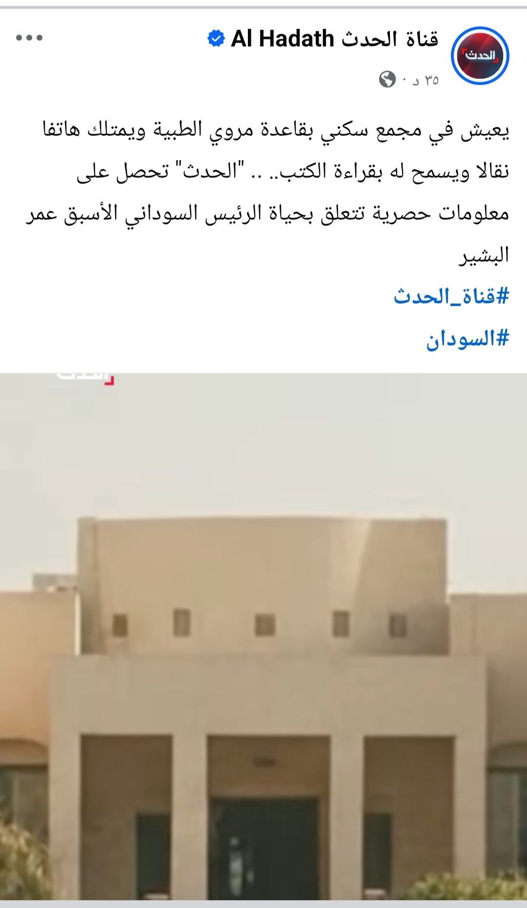 “التقرير الذي بثته قناة العربية الحدث عن مكان الرئيس السابق عمر البشير لا يتضمن أي معلومة جديدة، وأهم ماجاء فيه أن البشير برفقه عبد الرحيم والخنجر وآخرين من رموز الإنقاذ، ويمتلك هاتفاً ويطالع بعض الكتب ويتابع القنوات الفضائية ويتحرك قليلًا للرياضة. لكن الأهم، وربما الأخطر في التقرير هو تحديد مكان الإقامة وتأكيد الإحداثيات، خاصة في ظل سعي الطائرات المسيّرة التابعة لحلفاء الميليشيا للوصول إلى أي هدف له رمزية بعد خساراتهم الفادحة، وخلق فوضى أمنية في البلاد. وما نتيجة مداخلة والي غرب دارفور الراحل خميس أبكر مع إحدى القنوات الخارجية ببعيد. لذلك، على السلطات أن تعرف أنها في حـ.رب، وتتحلى بحس أمني أكبر في التعامل مع مثل هذه التقارير، والقصد منها.