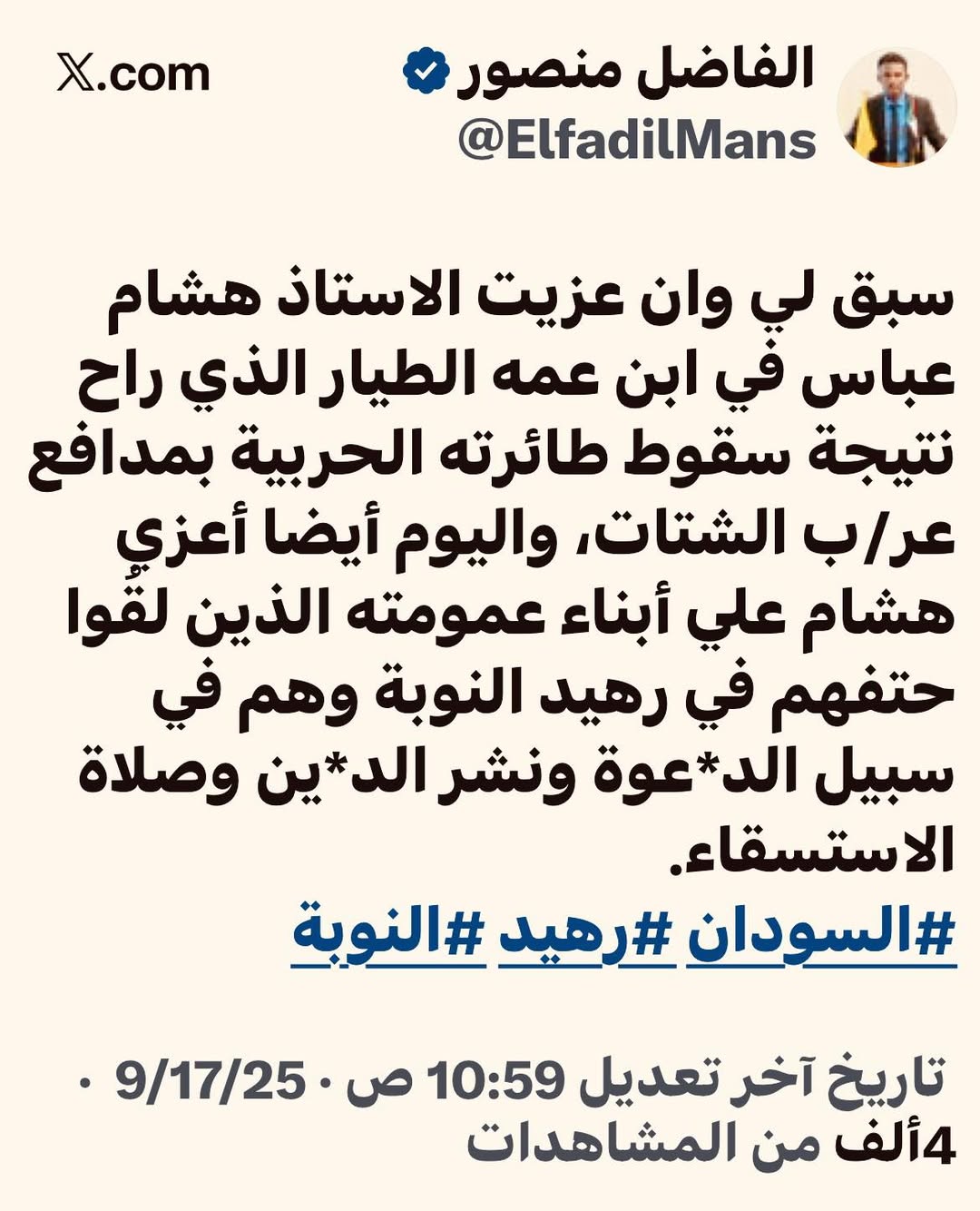 اذا اردت فعلاً ان تعزي هشام عباس ويتقبل منك هذا الواجب فالافضل ان تعزيه في وطنه لا في افراد جعلوا من الوطن مقبرة لانه لا يهمني من يقتل من هنا او هناك ، الذي يهمني هو وطني ولو على حساب نفسي وإنسانيتي التي ترفض الجريمة اياً كان مرتكبها ..
