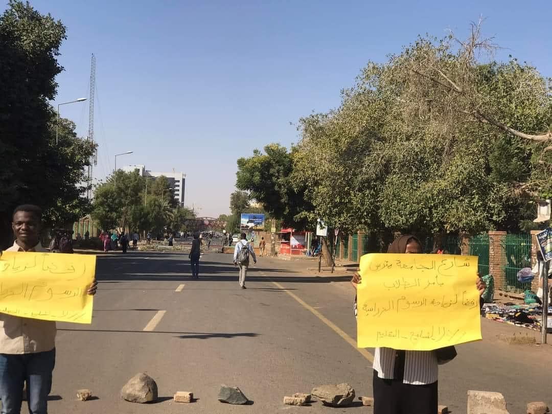 كفاح الطلبة كفاح الشعب جانب من إغلاق شارع الجامعة اليوم احتجاجاً على زيادة الرسو…
