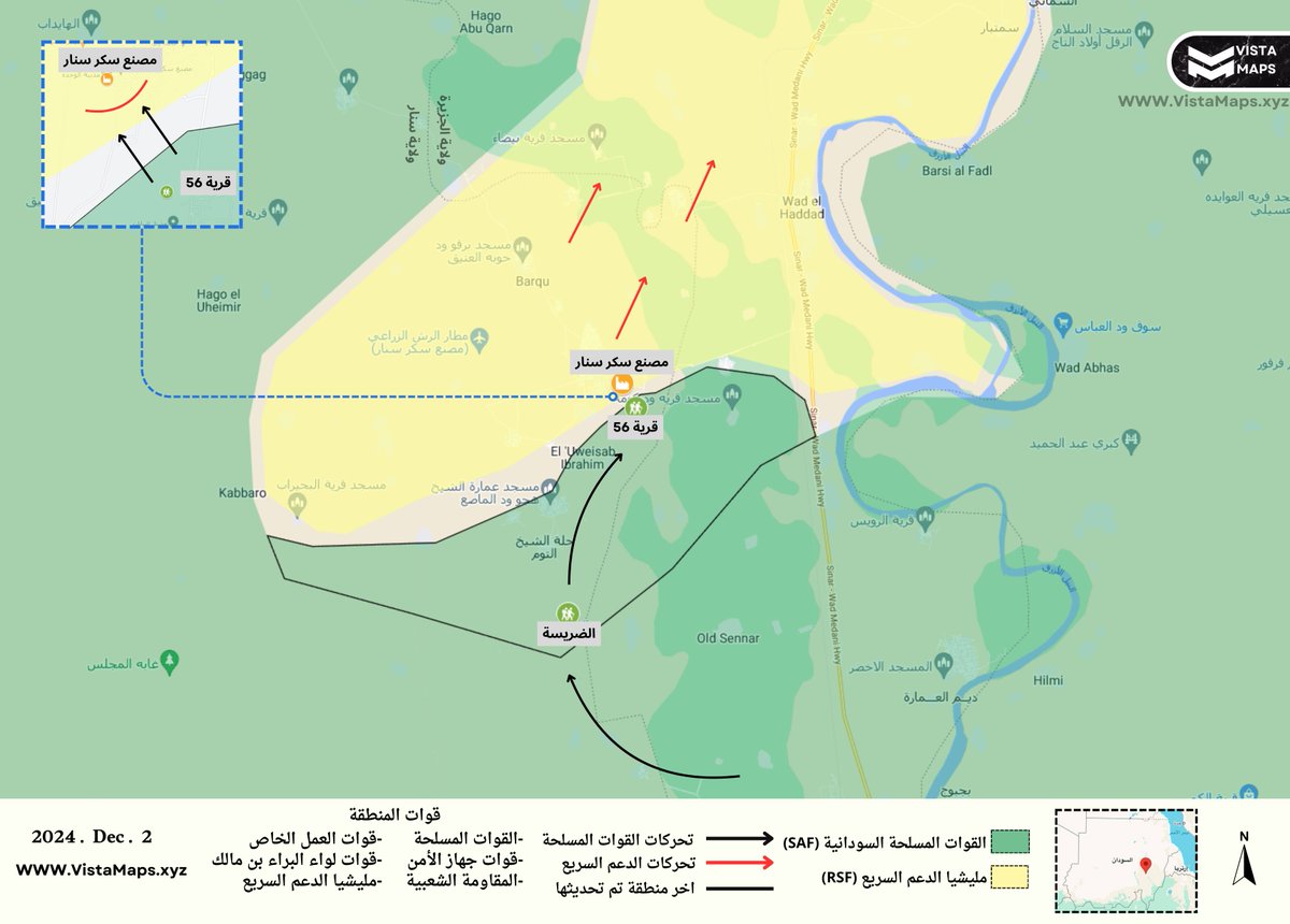 – تؤكد المقاطع المصورة استمرار المعارك العنيفة حتى المساء، حيث تواصل القوات المسلحة تقدمها من شمال غرب قرية 56 باتجاه المليشيا المتحصنة داخل المصنع.