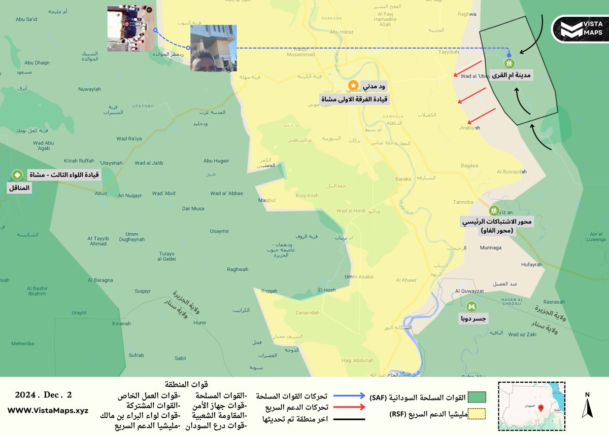 – صباح اليوم استعادت القوات المسلحة سيطرتها على مدينة أم القرى بقيادة اللواء أبو عاقلة كيكل قائد قوات درع السودان.