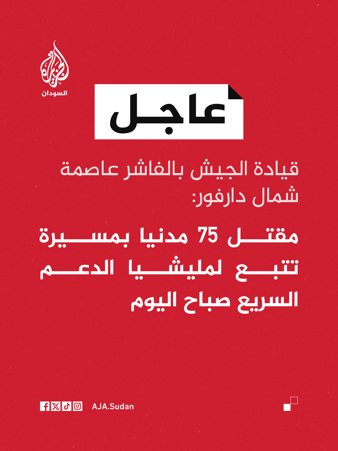 الجزيرة عاجل | قيادة الجيش بالفاشر عاصمة شمال #دارفور: مقتل 75 مدنيا بمسيرة تتبع لمليشيا… By null Published September 19, 2025 Share SHARE Facebook Twitter Pinterest LinkedIn[ad_1] عاجل | قيادة الجيش بالفاشر عاصمة شمال #دارفور: مقتل 75 مدنيا بمسيرة تتبع لمليشيا الدعم السريع صباح اليوم [ad_2] Source Facebook Twitter Pinterest LinkedIn Share This Article Facebook Twitter Email Print Previous Article السودان.. تحذيرات من كارثة صحية مع تفشي “أمراض الخريف” الوبائية في الخرطوم Next Article يشهد الله ماحصل مرة شكيت في عدالة ربنا، وفي عز التخوين والظلم الكنا بنتعرض ليهو،… Leave a Comment Leave a Reply Cancel replyYour email address will not be published. Required fields are marked *Comment * Name * Email * Website Save my name, email, and website in this browser for the next time I comment. Δ SearchSearchRecent Postsأكرمنا الله صباح اليوم الأحد بلقاء إخوةٍ كرام، على ضفة النيل الأزرق، حيث شاي الش… أعلن بنك السودان المركزي في منشور إدارة السياسات رقم (2025/15) رفع الاحتكار عن ا… ندوة بعنوان: القانون الدولي والسيادة الوطنية قراءة في موقف السودان من لجنة تقصي … والي نهر النيل تستقبل وزير الموارد البشرية والرعاية الاجتماعية الوزير يشيد بالأ… كامل ادريس: رئيس اللجنة السياسية لمؤسسات الدولة السودانية. Recent CommentsNo comments to show.
