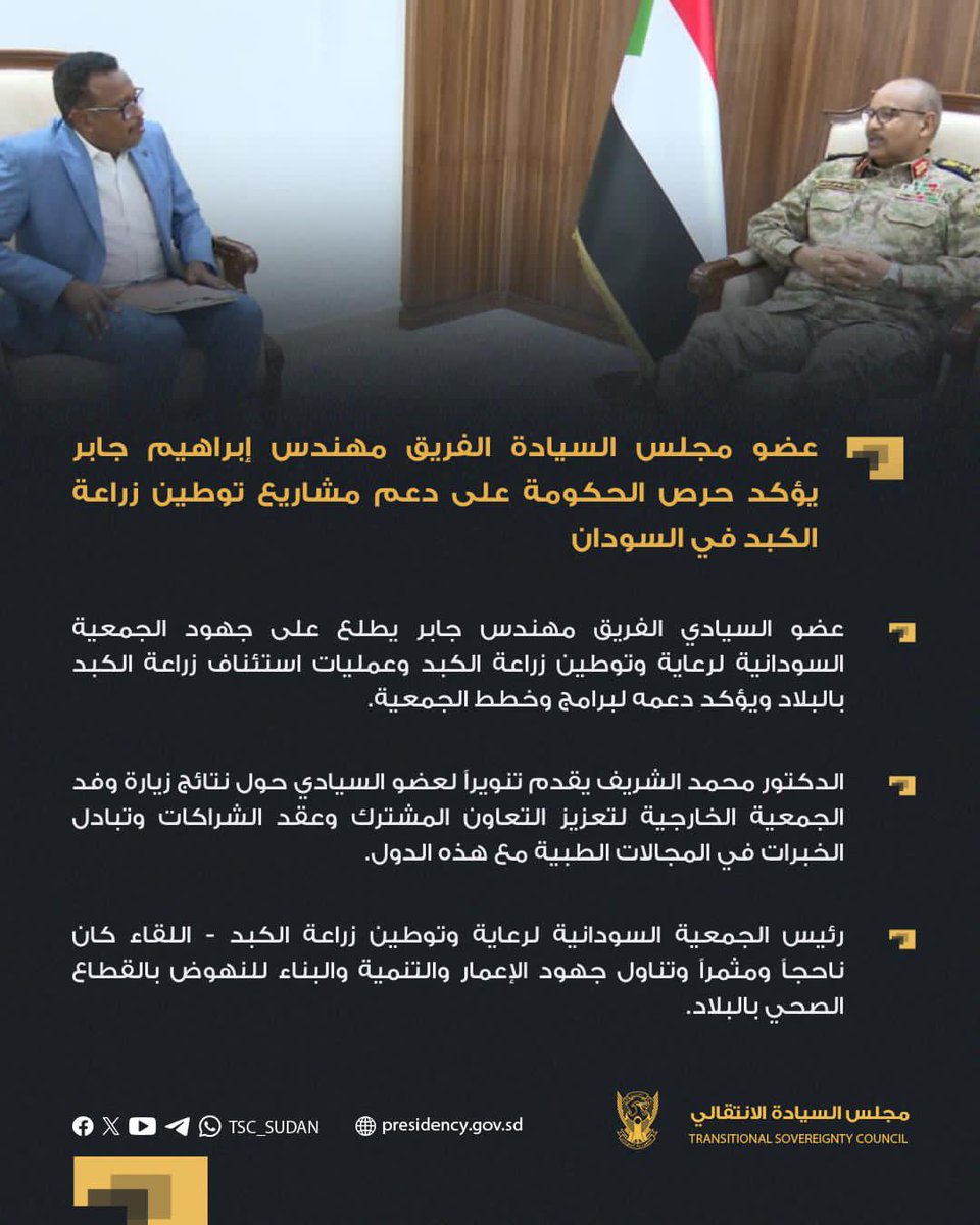 ⭕️ عضو مجلس السيادة الفريق مهندس إبراهيم جابر يؤكد حرص الحكومة على دعم مشاريع توطين زراعة الكبد في السودان