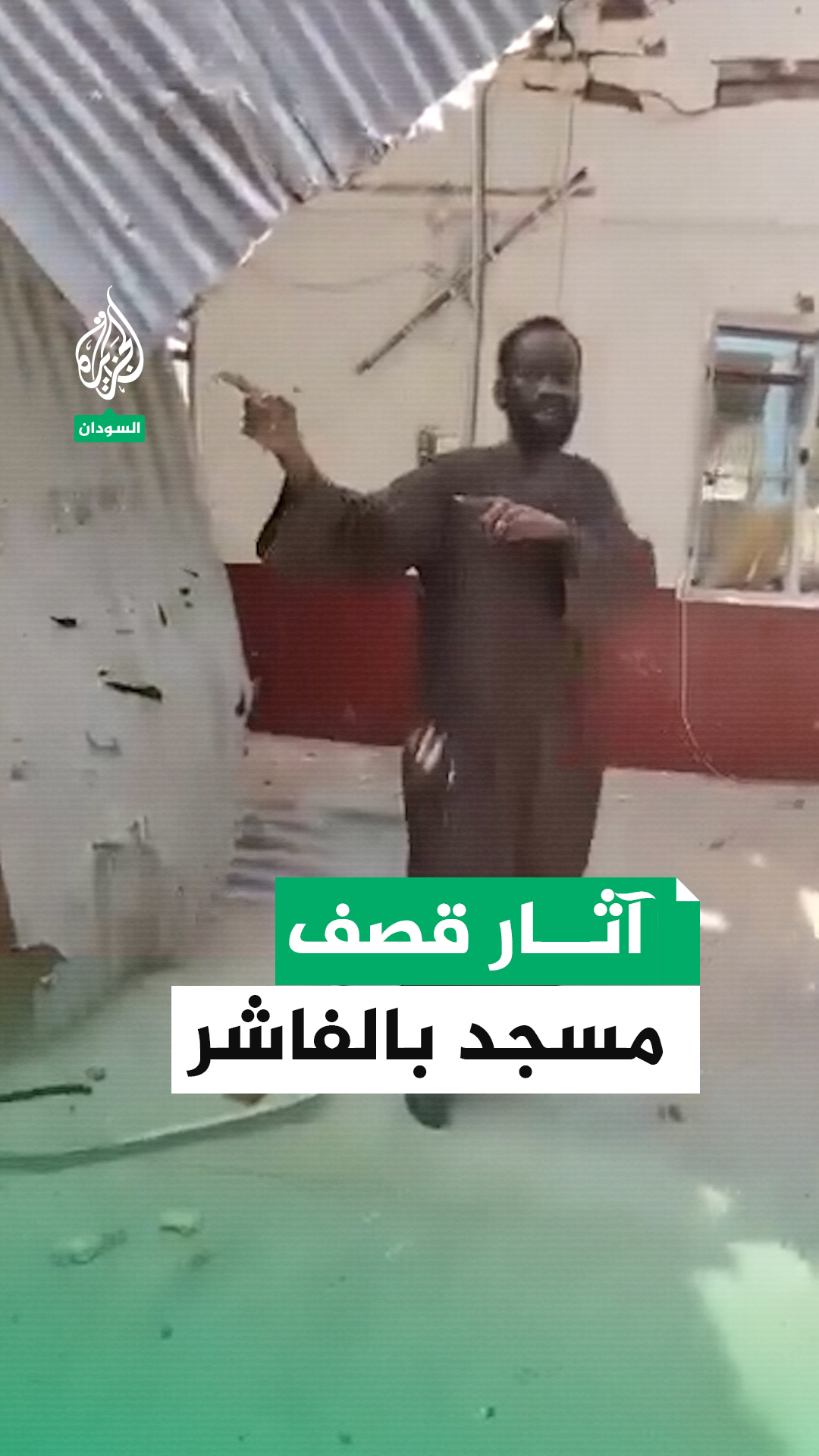 مواطن ينشر مقطعًا مصوَّرًا يُوضّح فيه آثار قصف قوات الدعم السريع بطائرة مسيَّرة لأحد المساجد في مدينة الفاشر بولاية شمال دارفور