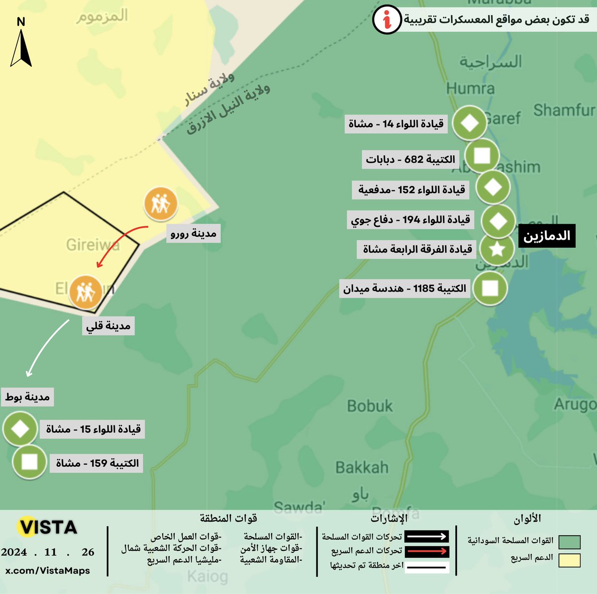 – تمكنت مليشيا الدعم السريع من التمركز في منطقة قُلي المجاورة لمنطقة رورو، بعد أن تم دحرها من هذه المناطق في وقت سابق.