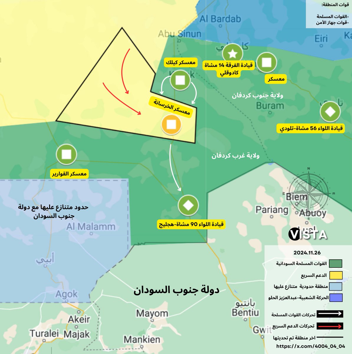– وردت تقارير تشير إلى محاولة المليشيا شن هجوم على معسكر كيلك قبل استهداف الخرسانة، حيث تمكنت القوات المسلحة من صد هذا الهجوم.