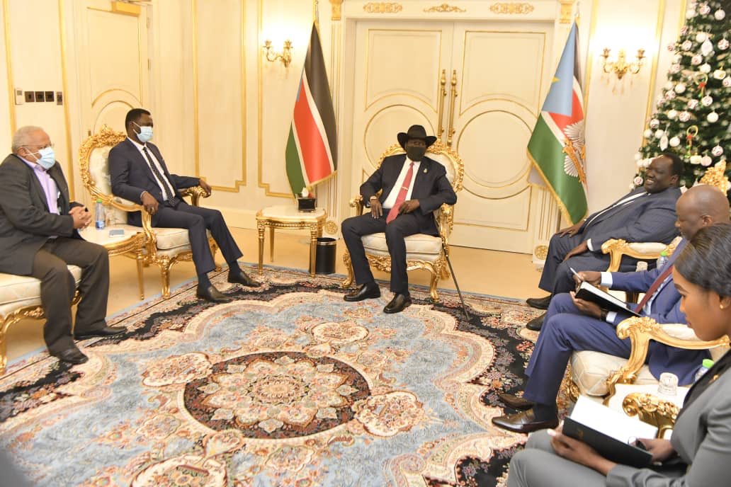 خلال زيارتي القصيرة لجوبا ،التقيت اليوم بالرئيس سلفاكير ميارديت ،تناول اللقاء عدد من القضايا ؛علي رأسها اتفاقية سلام جوبا حيث وجه سيادته رئيس لجنة السلام ؛توت قلواك بعقد ورشة منتصف يناير لتقييم تنفيذ الاتفاق بمشاركة الموقعين والضامنين والداعمين بغرض وضع جداول جديدة لإنفاذ الاتفاق