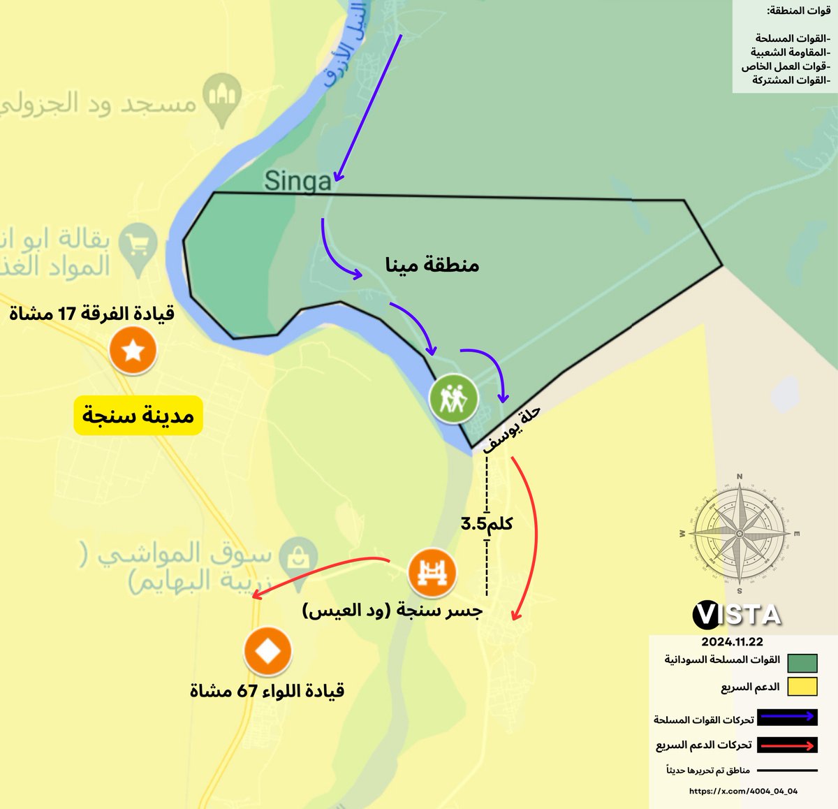 – لم يتبقى فاصل بين القوات المسلحة ومدينة سنجة سوى 3.5 كيلومتر، والتي تتمثل في منطقة ود العيس.