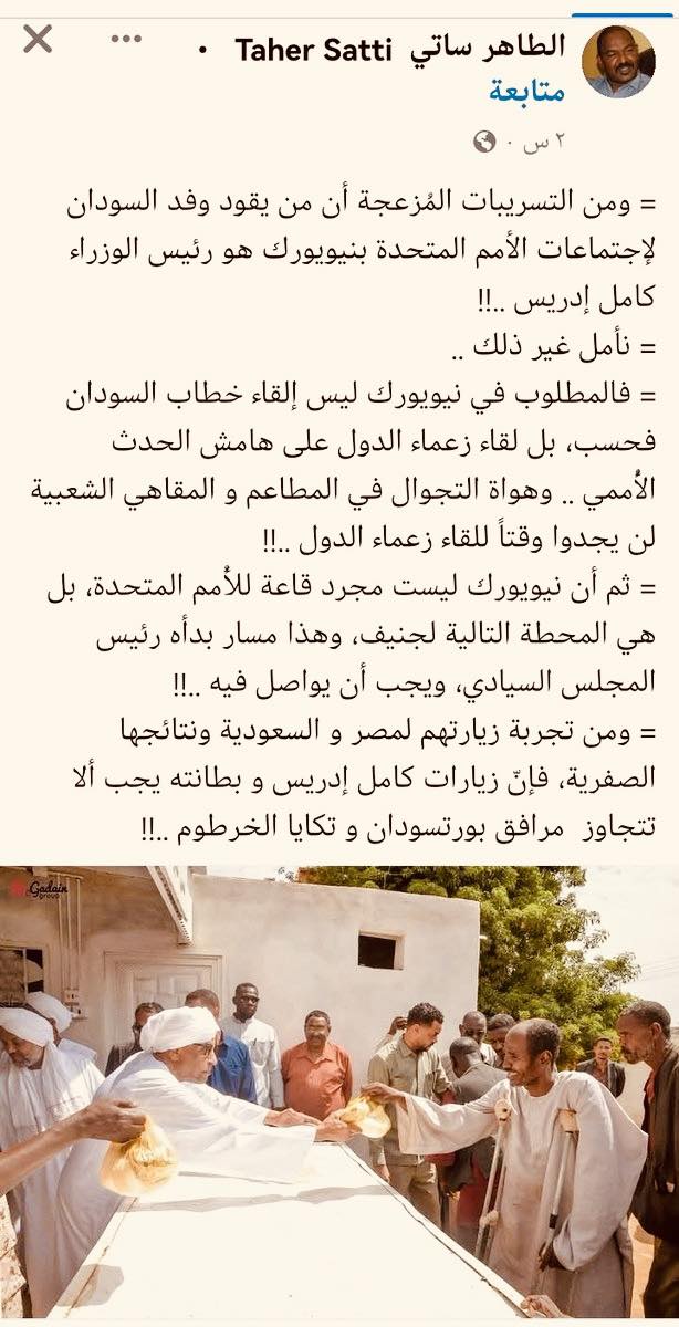 الحقيقة الامر لن يتغير ان قاد وفد السودان كامل ادريس او احد المجرمين من القتلة البرهان كباشي العطا او البشير شخصيا او حتى لو بعث الترابي من قبره لان الامر لا يتعلق باشخاص ،، يجب ان تفهموا ان العالم يعرف تفاصيل ما يدور في السودان اكثر منكم ويعلم من يقود السودان اكثر منكم انتم من تديرونه .