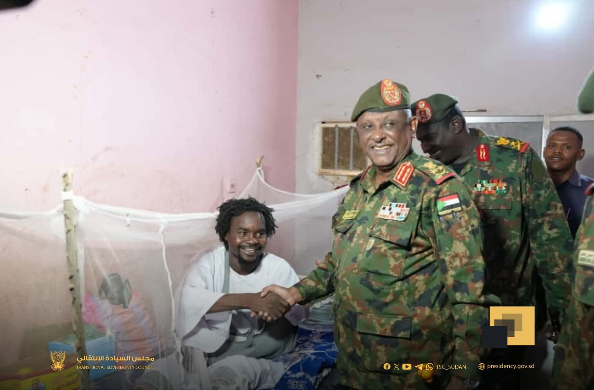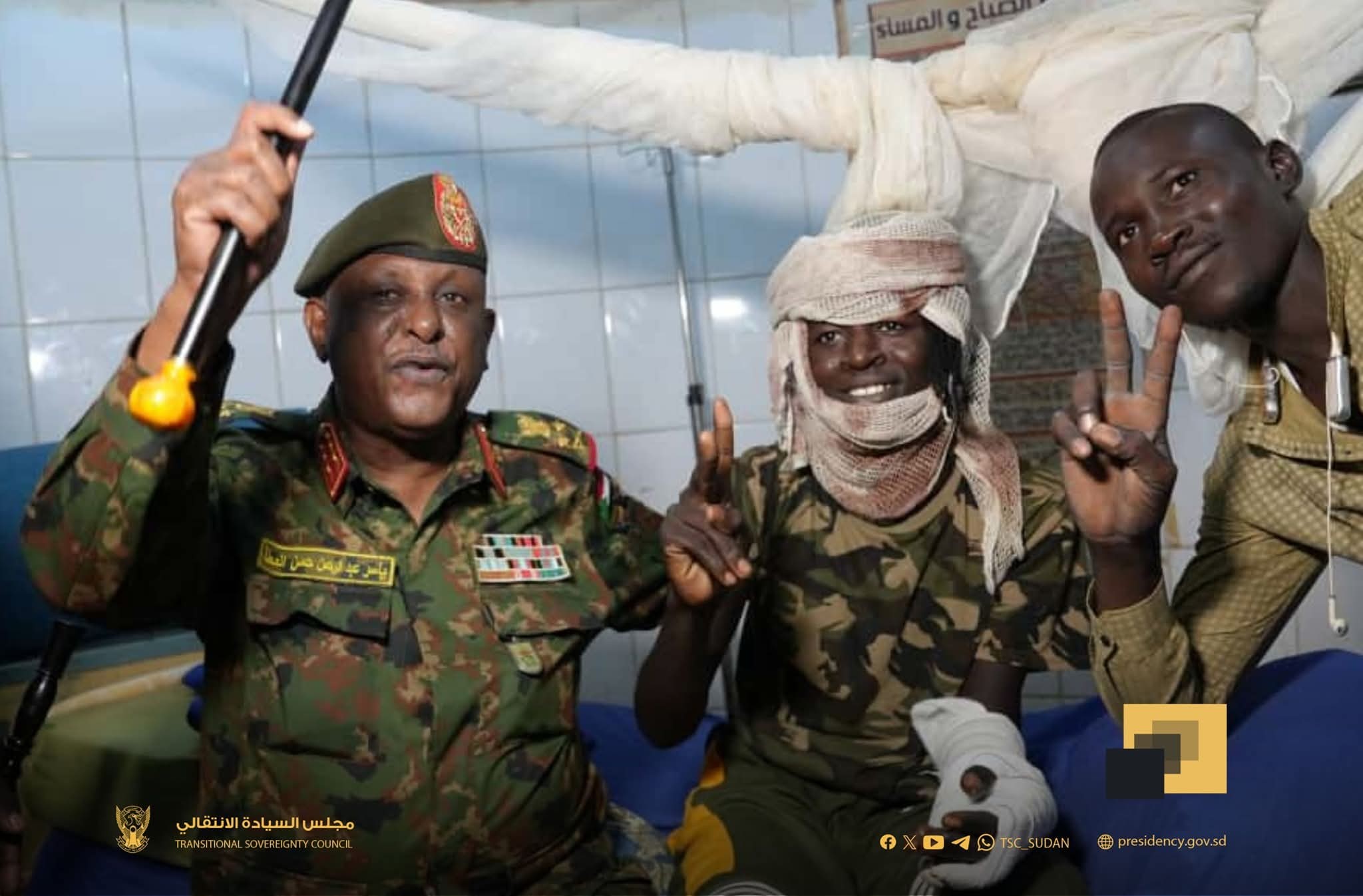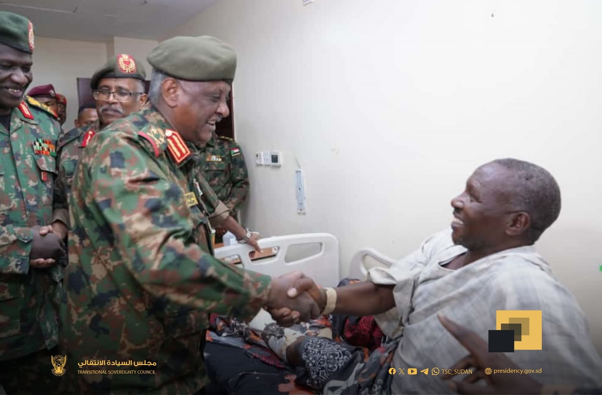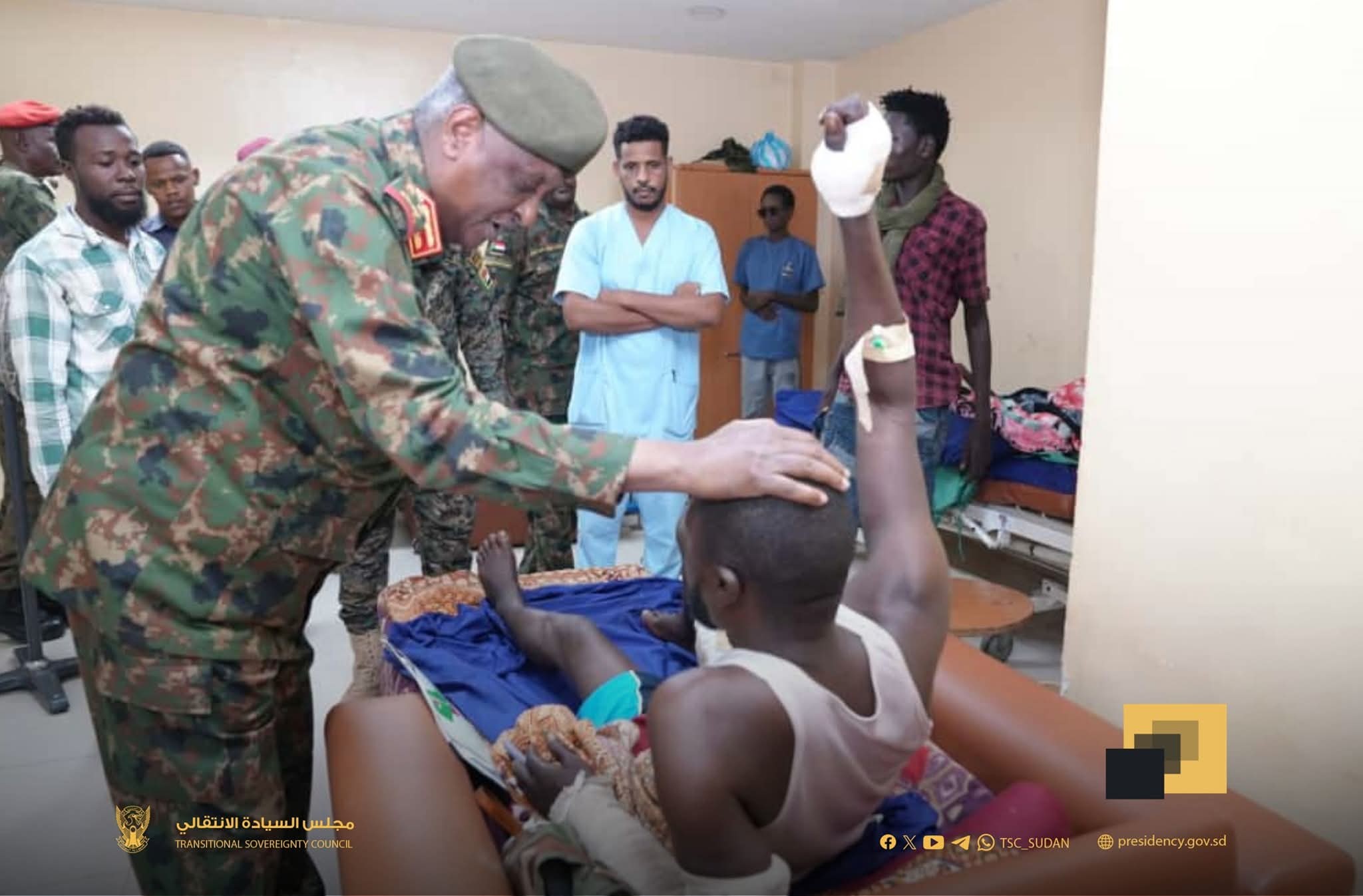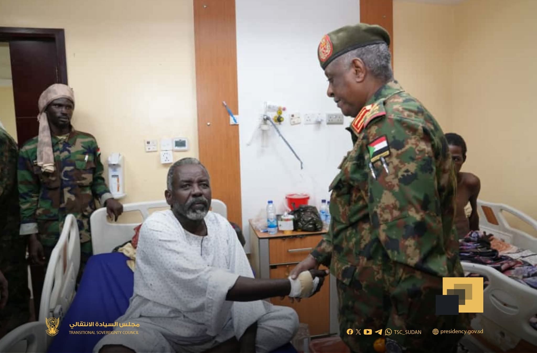 السيد عضو مجلس السيادة مساعد القائد العام للقوات المسلحة الفريق أول الركن #ياسر_عبدالرحمن_العطا، يتفقد جرحى العمليات بمستشفى السلاح الطبي بأم درمان