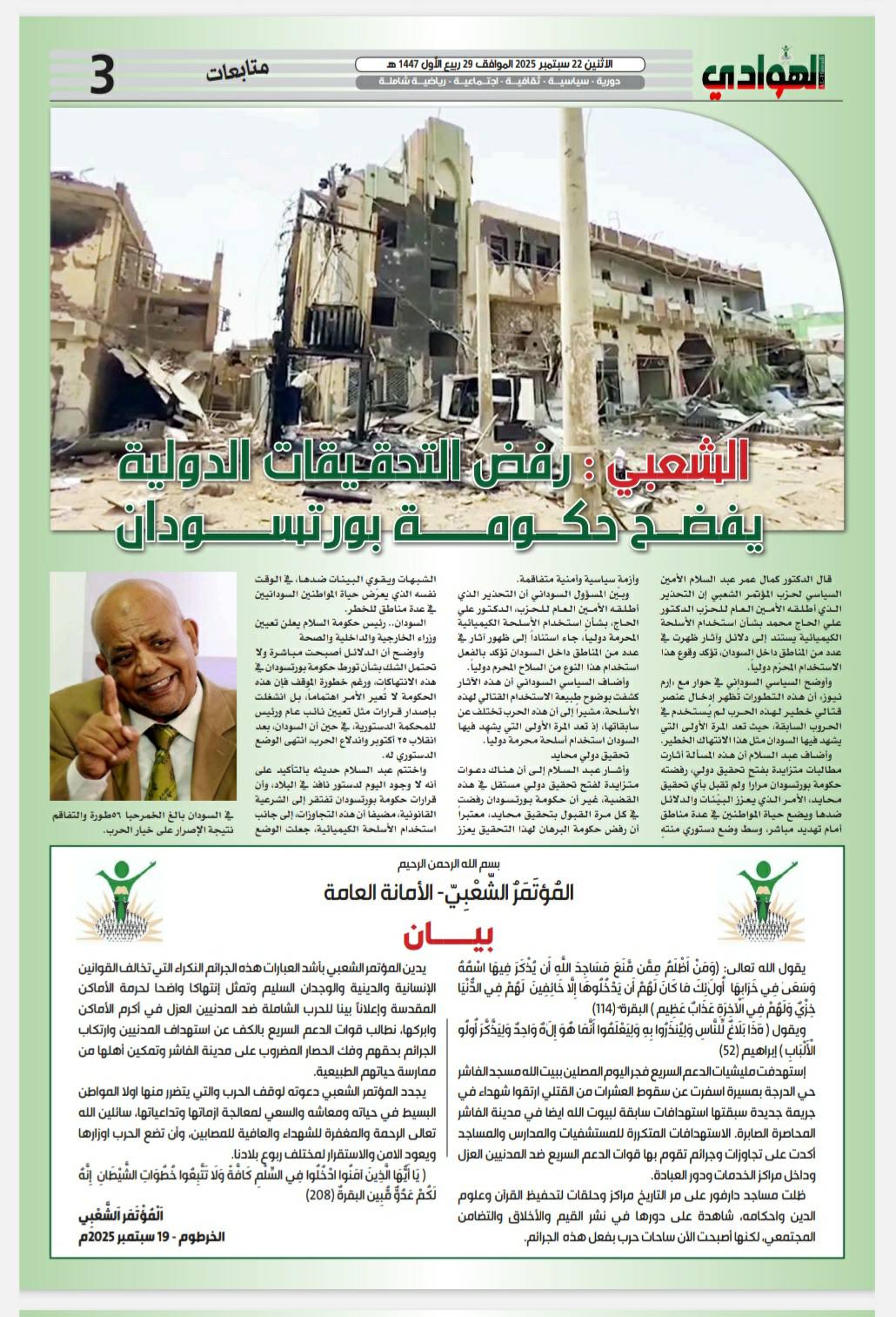 الشعبي:قصف المليشيا لمسجد الفاشر جريمة بشعة.