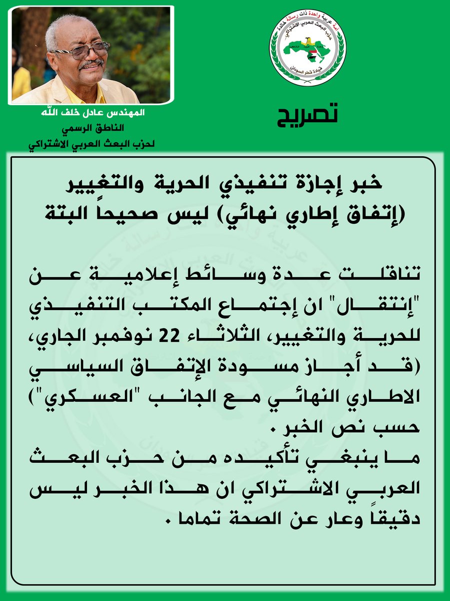 خبر إجازة تنفيذي الحرية والتغيير (إتفاق إطاري نهائي) ليس صحيحاً البتة