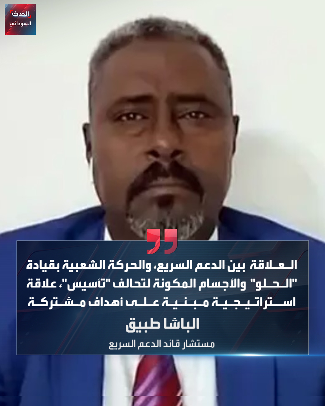 قال مستشار قائد الدعم السريع، الباشا طبيق، إن العلاقة بين الدعم السريع، والحركة الشعبية بقيادة “الحلو” والأجسام المكونة لتحالف “تأسيس”، علاقة استراتيجية مبنية على أهداف مشتركة.