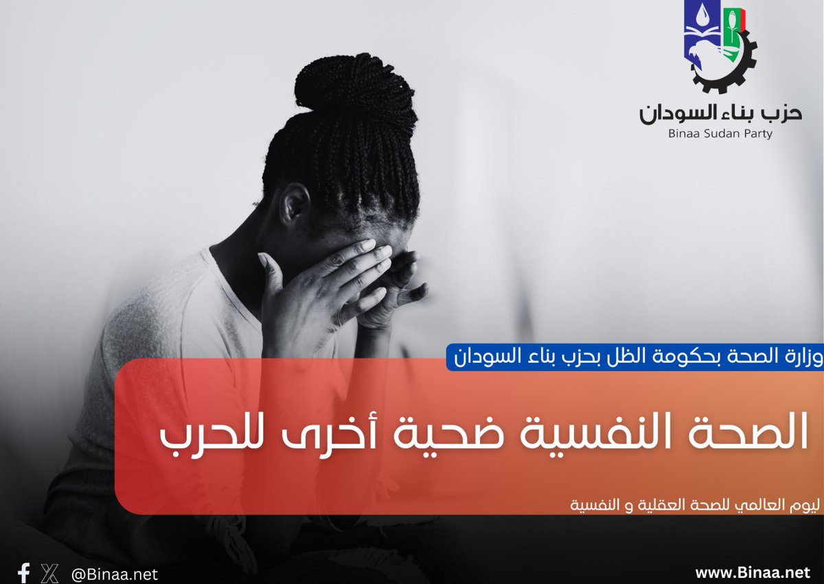 يمر علينا اليوم العالمي للصحة العقلية و النفسية والذي يصادف العاشر من أكتوبر هذا العام وبلادنا تتناوشها الحرب وصحة مواطنينا العقلية والنفسية متأثرة بشدة بهذه الحرب بجانب صحتهم الجسدية