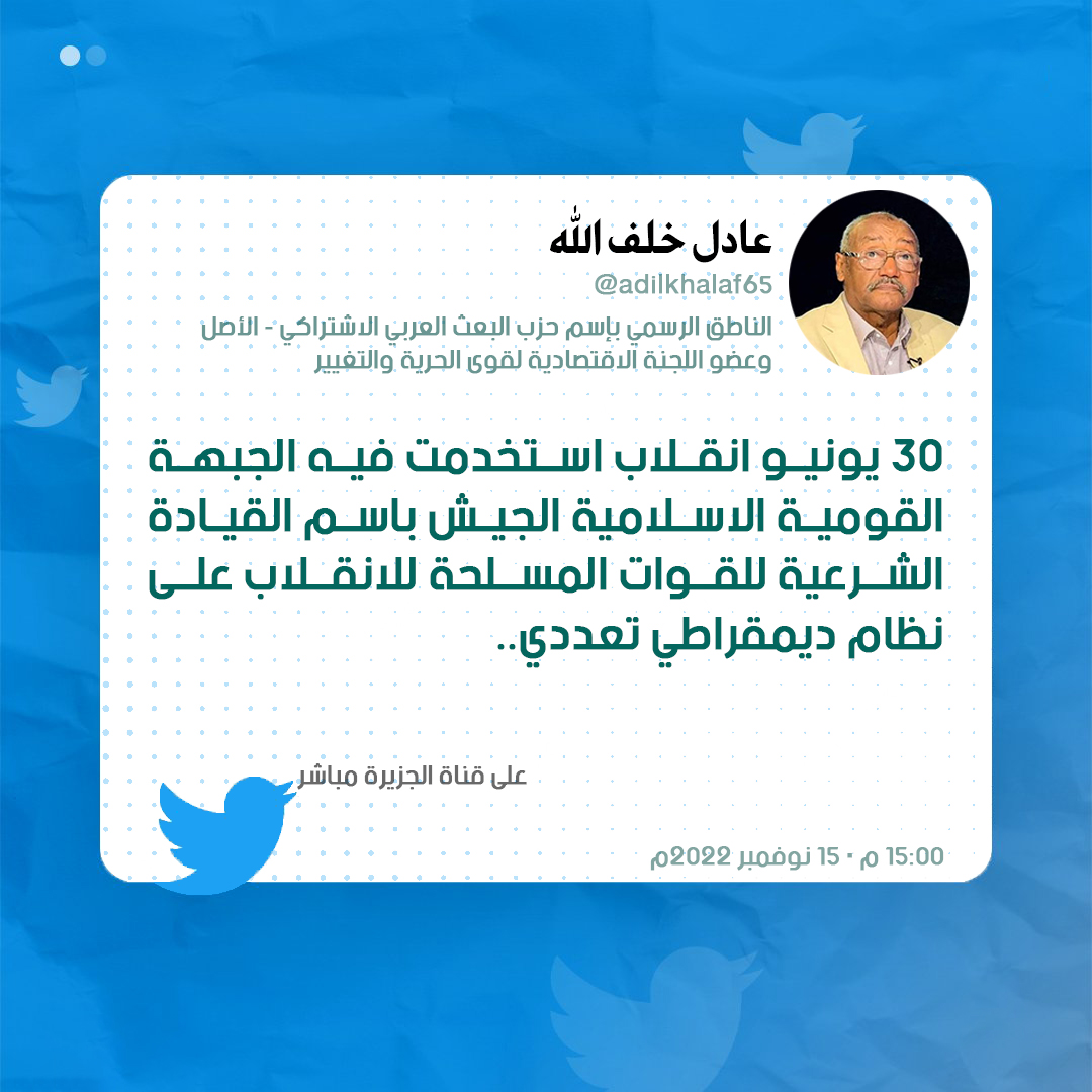 30 يونيو انقلاب استخدمت فيه الجبهة القومية الاسلامية الجيش باسم القيادة الشرعية للقوات المسلحة للانقلاب على نظام ديمقراطي تعددي..