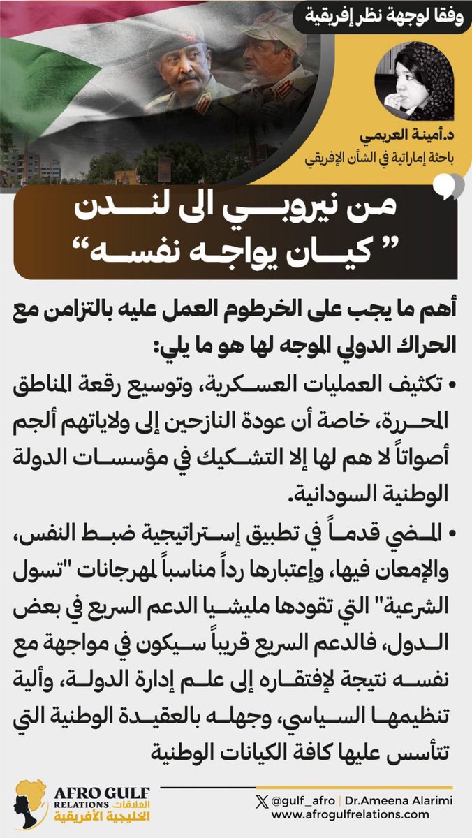 لذلك كل ما على #الخرطوم أن تفعله هو المضي قدماً في تطبيق إستراتيجية ضبط النفس، والإمعان فيها، وإعتبارها رداً مناسباً لمهرجانات “تسول الشرعية” التي تقودها مليشيا #الدعم_السريع في بعض الدول، فمن الطبيعي أن تقوم بعض الأطراف الدولية بالحديث حول مألات الحكومة الموازية، وقد تظهر أصوات داعمة لها، ولكن كل ذلك لن يخرج خارج إطار الحرب النفسية الساعية إلى التأثير على تقدم العمليات العسكرية للجيش السوداني، فالدعم السريع قريباً سيكون في مواجهة مع نفسه نتيجة لإفتقاره إلى علم إدارة الدولة، وألية تنظيمها السياسي، وجهله بالعقيدة الوطنية التي تتأسس عليها كافة الكيانات الوطنية.