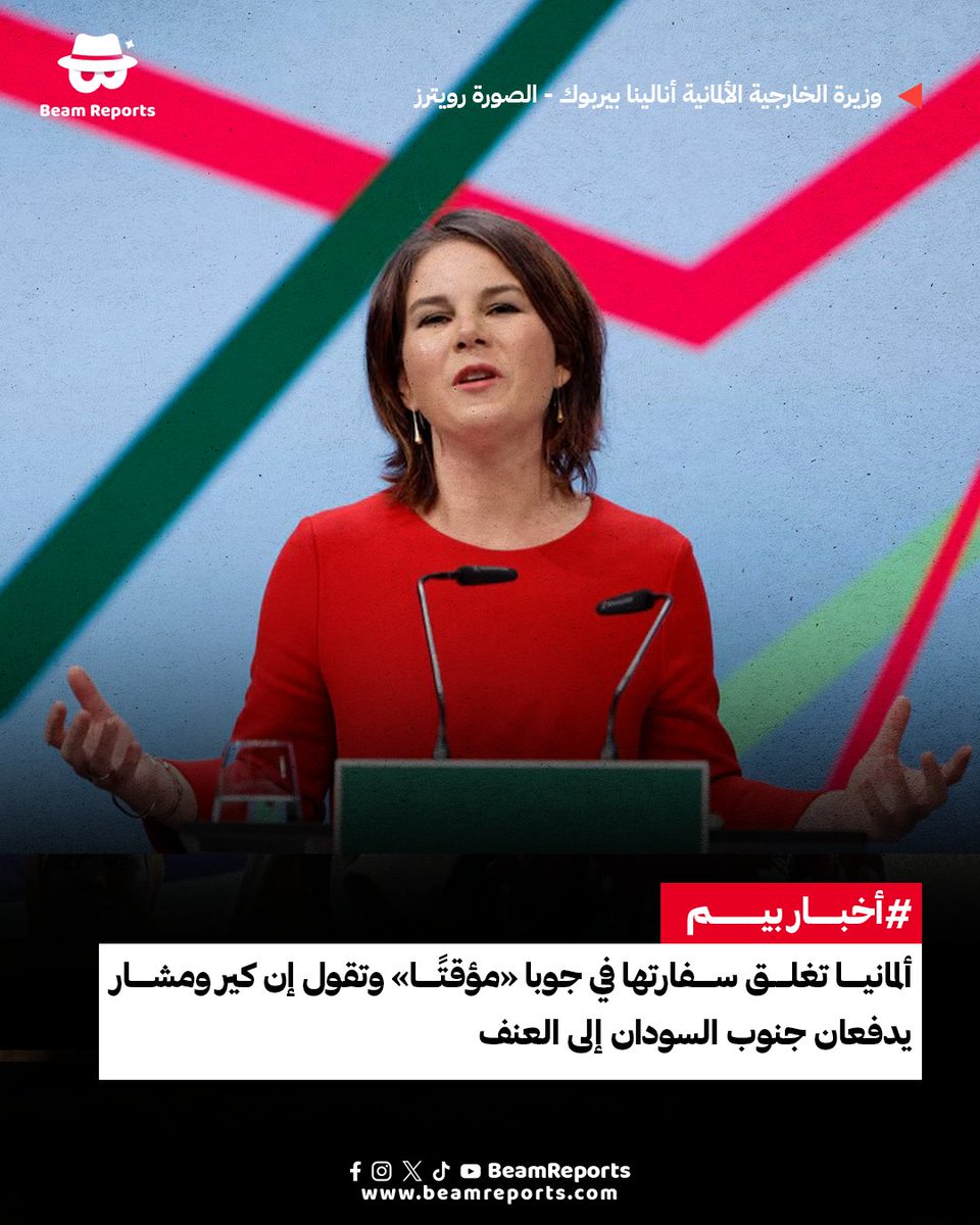 قالت وزيرة الخارجية الألمانية أنالينا بيربوك اليوم «قررنا هذا الأسبوع إغلاق سفارتنا في جوبا مؤقتًا بسبب الوضع هناك»، مضيفة «تظل سلامة زملائنا وزميلاتنا على رأس أولوياتنا». وأشارت إلى أن رئيس جمهورية جنوب السودان سلفا كير، ونائبه الأول ريك مشار يدفعان البلاد إلى دوامة من العنف.