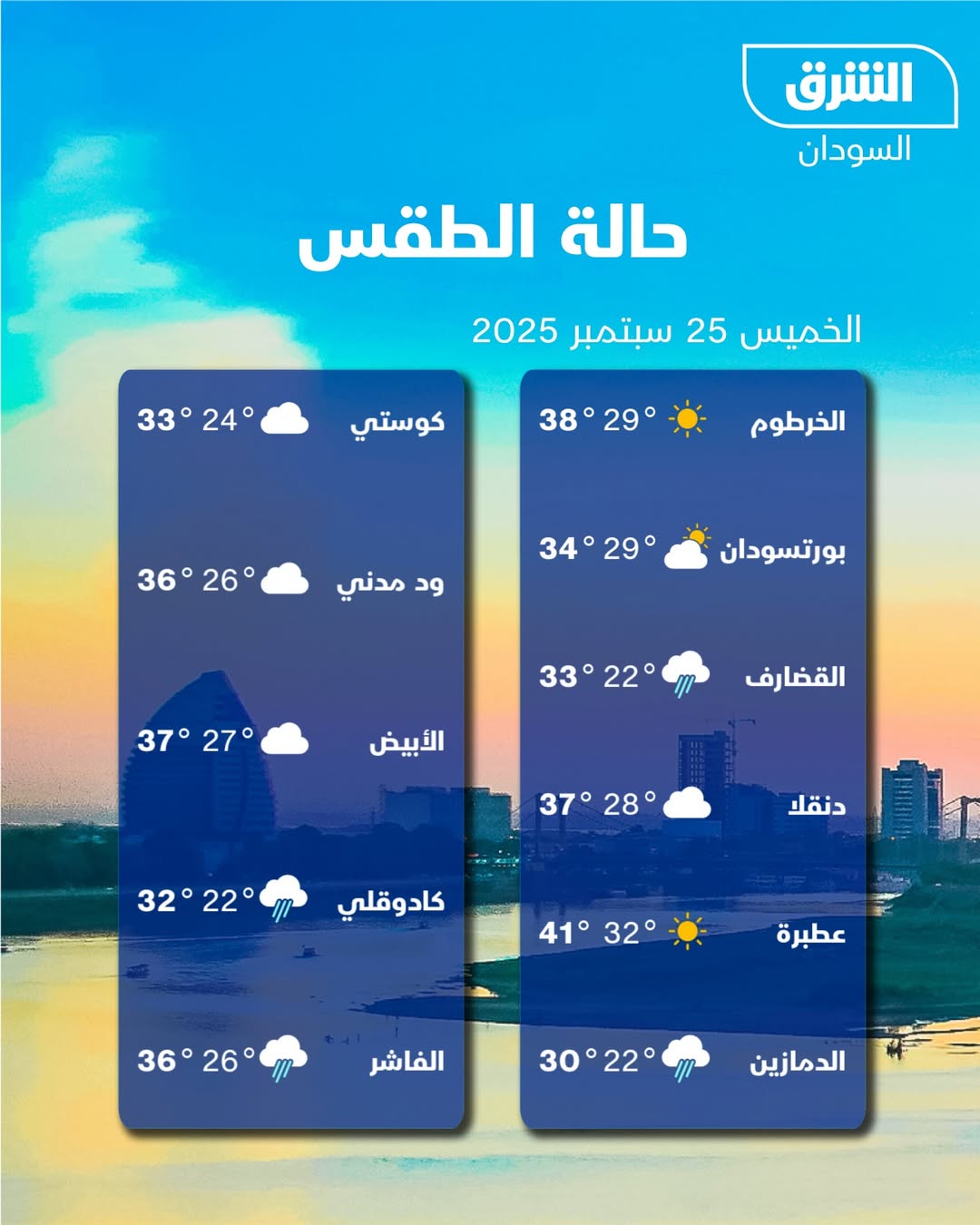 قناة الشرق حالة #الطقس في #السودان غداً #الشرق_السودان By null Published September 24, 2025 Share SHARE Facebook Twitter Pinterest LinkedIn[ad_1] حالة #الطقس في #السودان غداً #الشرق_السودان [ad_2] Source Facebook Twitter Pinterest LinkedIn Share This Article Facebook Twitter Email Print Previous Article عودة قسم شرطة الكلاكلة اللفة في جنوب الخرطوم إلى العمل. #Sudan_War_Updates … Next Article مشاهد من السوق المركزي جنوب الخرطوم عقب عودة الحياة إلى طبيعتها #فيديو #الجزيرة_… Leave a Comment Leave a Reply Cancel replyYour email address will not be published. Required fields are marked *Comment * Name * Email * Website Save my name, email, and website in this browser for the next time I comment. Δ SearchSearchRecent Postsأكرمنا الله صباح اليوم الأحد بلقاء إخوةٍ كرام، على ضفة النيل الأزرق، حيث شاي الش… أعلن بنك السودان المركزي في منشور إدارة السياسات رقم (2025/15) رفع الاحتكار عن ا… ندوة بعنوان: القانون الدولي والسيادة الوطنية قراءة في موقف السودان من لجنة تقصي … والي نهر النيل تستقبل وزير الموارد البشرية والرعاية الاجتماعية الوزير يشيد بالأ… كامل ادريس: رئيس اللجنة السياسية لمؤسسات الدولة السودانية. Recent CommentsNo comments to show.