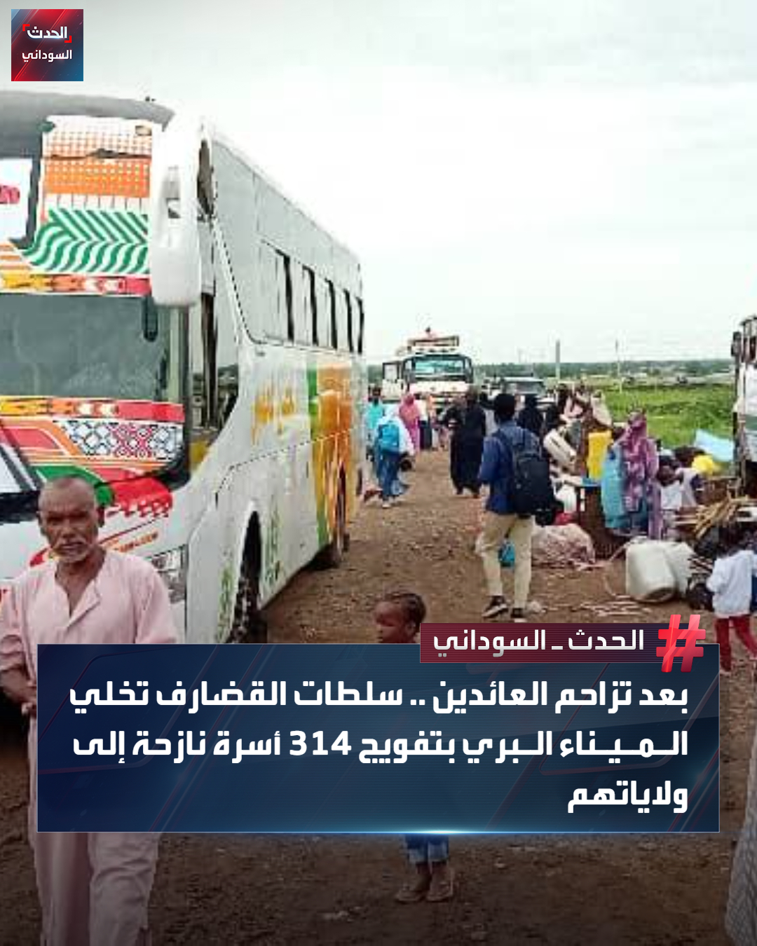 أكملت السلطات المحلية بالقضارف تفويج عدد 314 أسرة ، من الميناء البري ، بعد موجة من الازدحام بفعل توافد العائدين .
