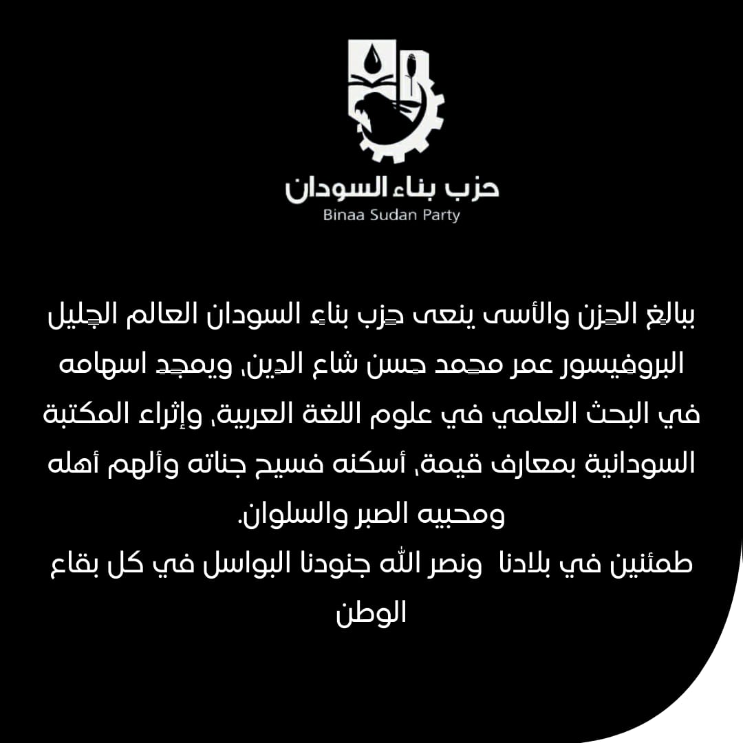 #نعي ببالغ الحزن والأسى ينعى حزب بناء السودان العالم الجليل البروفيسور عمر محمد …