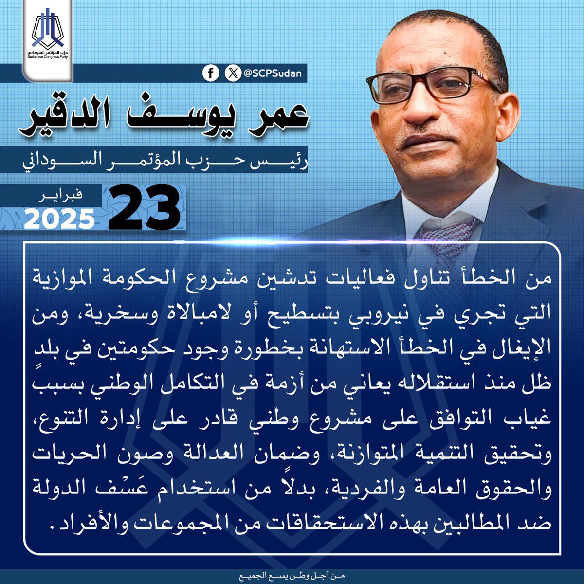 م.عمر الدقير @omereldigair رئيس الحزب