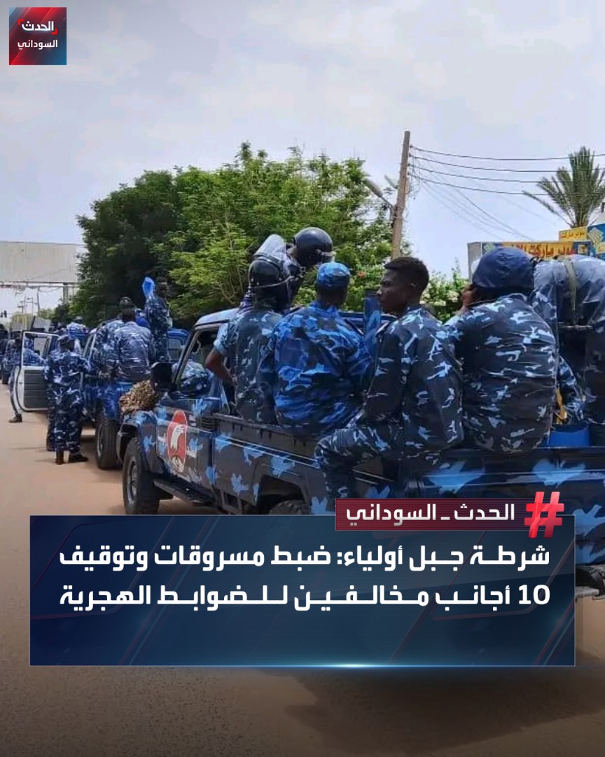 قالت شرطة محلية جبل أولياء بولاية الخرطوم إنها ضبطت كميات كبيرة من المسروقات وأوقفت 10 أجانب مخالفين للضوابط الهجرية.
